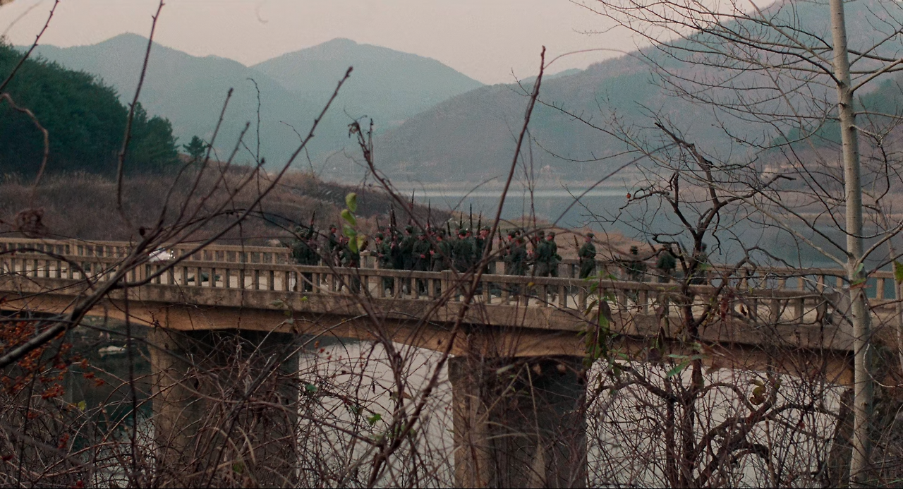 이때 두 부대 사이에 강아지 한 마리가 달려오고, 곧이어 강아지를 잡으려는 어린 소년이 뛰어들어 온다. 이 모습을 본 이태는 즉시 사격을 중지하라고 명령하며, 토벌군 역시 사격 중지를 명령한다. 이태가 강아지를 안은 소년에게 이쪽으로 달려오라고 소리치자, 토벌군 대장도 자신 쪽으로 달려오라고 한다. 어디로 갈지 몰라 망설이고 있는 소년에게 마을 저쪽에서 소년의 엄마가 빨리 자신에게 오라고 소리친다. 그러자 소년은 어느 쪽 군대도 아닌 엄마 곁으로 달려간다. 이 영화의 시각을 보여주는 상징적인 장면이다.