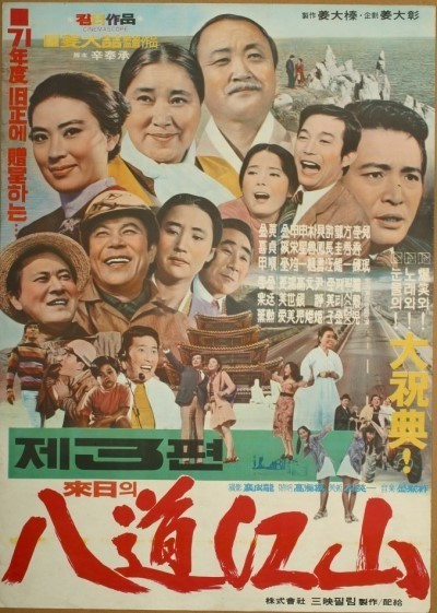 영화 <팔도강산> 시리즈에서는 당대의 유명한 배우들이 총출동하다시피 하였으며, 톱가수들도 모두 나와 전국 각 지방을 대표하는 노래를 불렀다. 이들 젊은 스타들의 모습을 다시 보는 것도 또 다른 재미이다. 풋풋한 20대의 나훈아가 나와서 <고향열차>를 부르는 모습을 보니, 얼마 전 <테스 형>을 부른 나훈아와 격세지감을 느낀다. 그리고 인기 있었던 옛날 여배우들을 지금 보니 그렇게까지 예쁜 줄은 모르겠다. 그런데 윤정희는 다르다. 지금 보아도 예쁘다.
