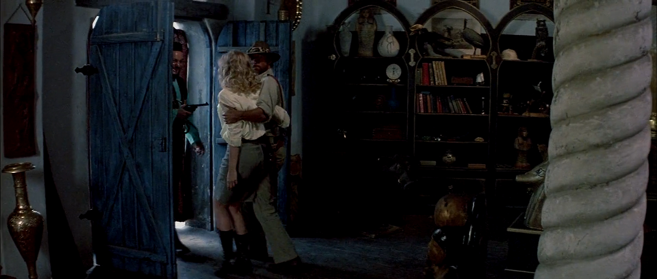 소동의 와중에 쿼터메인과 제시는 휴스턴 교수가 납치됐던 골동품 가게를 찾아내고, 그곳에서 교수의 시신과 함께 보물의 위치가 새겨진 조각상을 발견한다. 고고학에 조예가 깊은 제시는 그 조각상이 아버지가 찾아낸 유물이라 직감한다. 가게 주인이 위협을 느껴 총을 꺼내 들고 두 사람을 죽이려 하는데, 그때 도가티와 보크너가 들이닥친다. 쿼터메인은 다이너마이트를 던져 가게를 폭파시키며 탈출한다.
