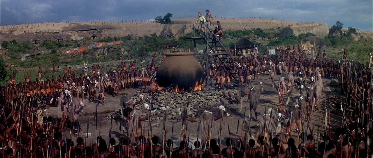 쿼터메인과 제시는 독일군의 비행기를 훔쳐 산으로 향하지만, 도중에 보크너 대령이 이끄는 독일군의 공격을 받아 비행기가 추락한다. 정글에 불시착한 이들은 어느 원주민 부족에게 잡히는데, 이들은 식인종이었다. 두 사람은 큰 항아리에 넣어져 삶길 처지에 몰렸지만, 기지를 발휘하여 항아리를 쓰러뜨려 탈출하는 데 성공한다. 그들이 탈출하자마자 그곳에 보크너와 도가티가 이끄는 군대가 몰려와 마을을 파괴하고 원주민들을 학살한다. 그들을 피해 도망가던 쿼터메인과 제시는 나무에 거꾸로 매달려 지내는 부족 사람들의 구출을 받는다.