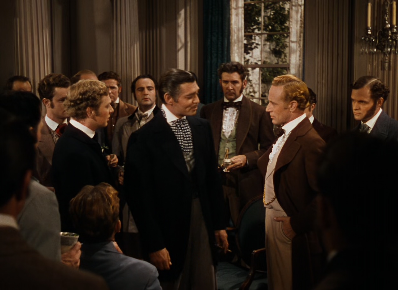 이 영화에서 재미있는 몇 가지 장면이 있다. 하나는 남북 전쟁을 앞두고 그에 대비한 남부 청년들의 모습이다. 그들은 정말 철없다 할 정도로 전쟁에 대해 몰라도 너무 모른다. 전쟁이 시작되면 일당백의 자신들 손에 북부군 따위와 추풍낙엽처럼 쓰러질 것이라 생각한다. 전쟁만 나면 바로 자신들의 승리가 결정될 것이라 생각한다. 레트가 약간 비판적인 이야기를 하자 모두들 발끈하면서 자신들을 무시하느냐며 으름장을 놓는다.