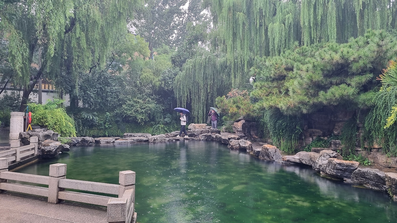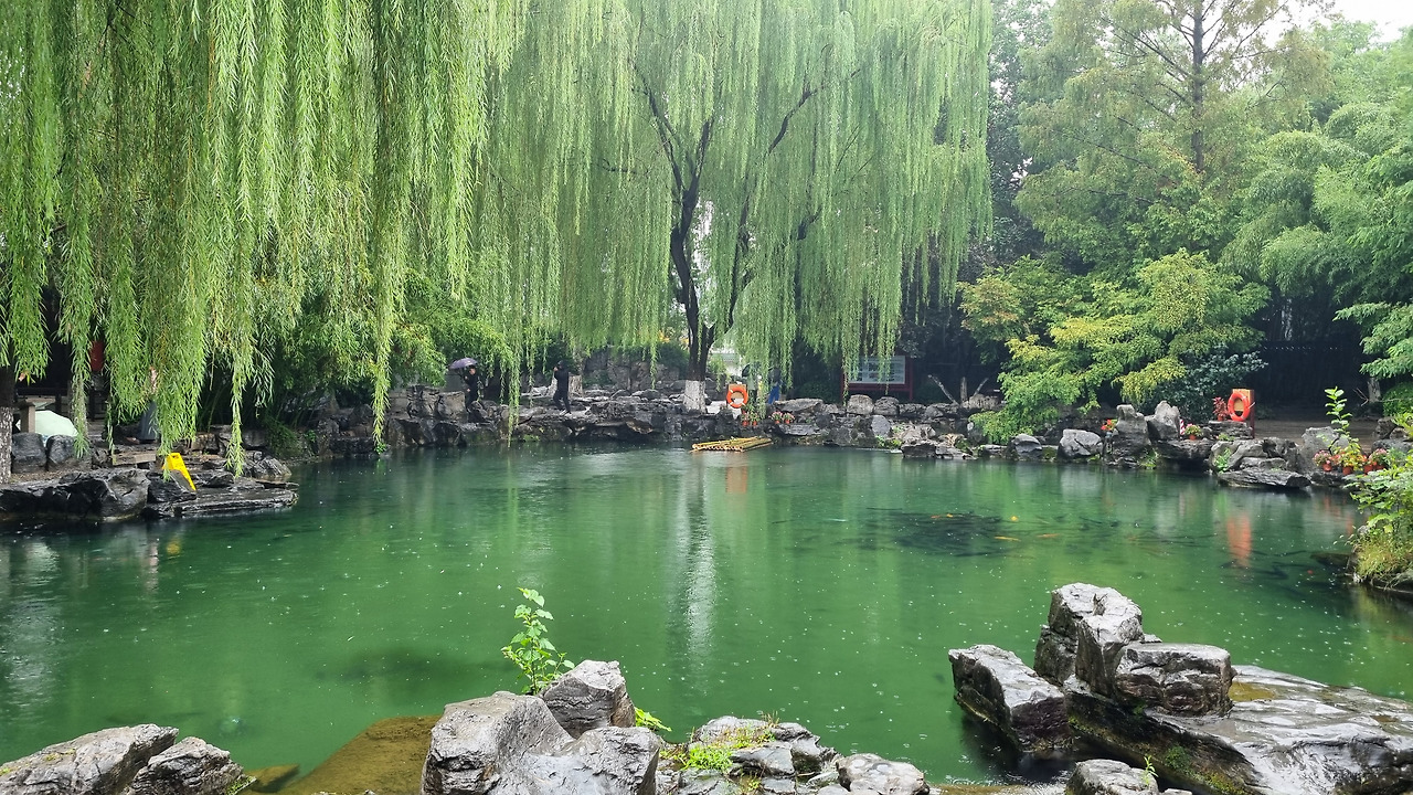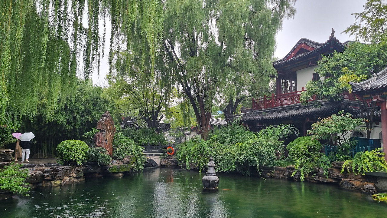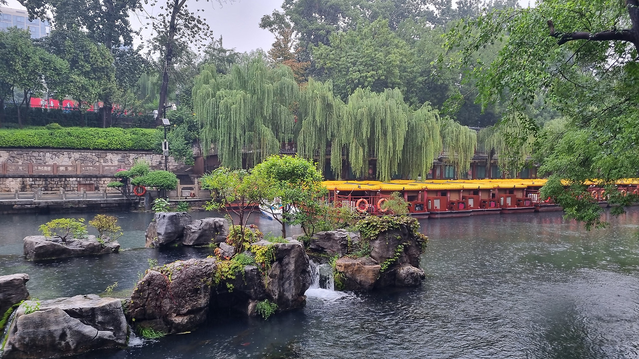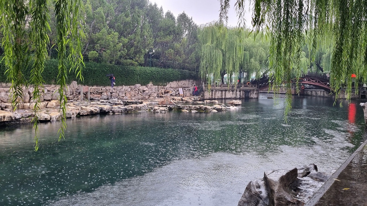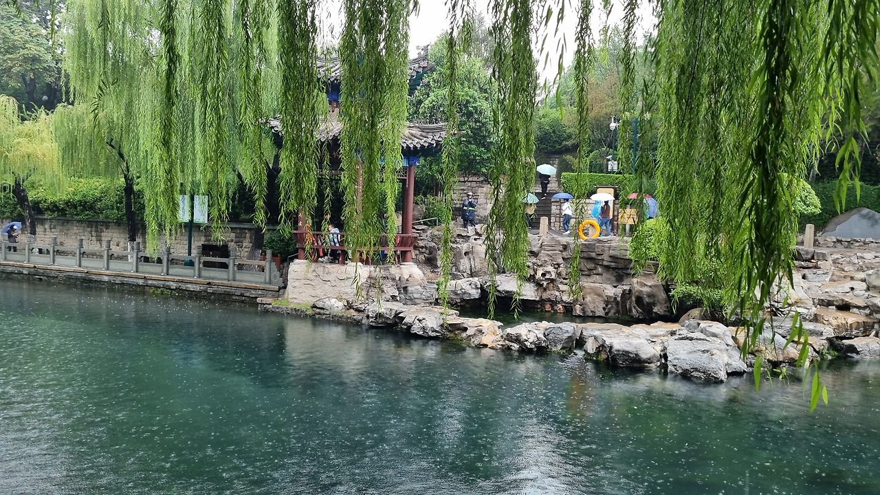 천하제일천 역시 입장료가 40위안이었으나, 경로 우대로 무료로 입장할 수 있었다. 입구를 통과하니 바로 표돌천이 나왔다. 비가 오는 날인데도 불구하고 표돌천 주위에는 사람들이 바글바글 몰려 제대로 구경하기 힘들 정도였다. 표돌천 큰 연못 아래에서 물이 솟아나는데, 물이 너무나 맑았다. 표돌천 주위는 수양버들이 늘어져 있었고, 연못을 감싸고 아름다운 건물들이 들어서 있었다. 연못과 건물, 그리고 수양버들이 어울려 환상적인 모습을 보여주었다. 정말 아름다운 샘이었다.
