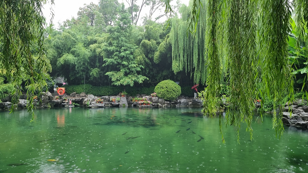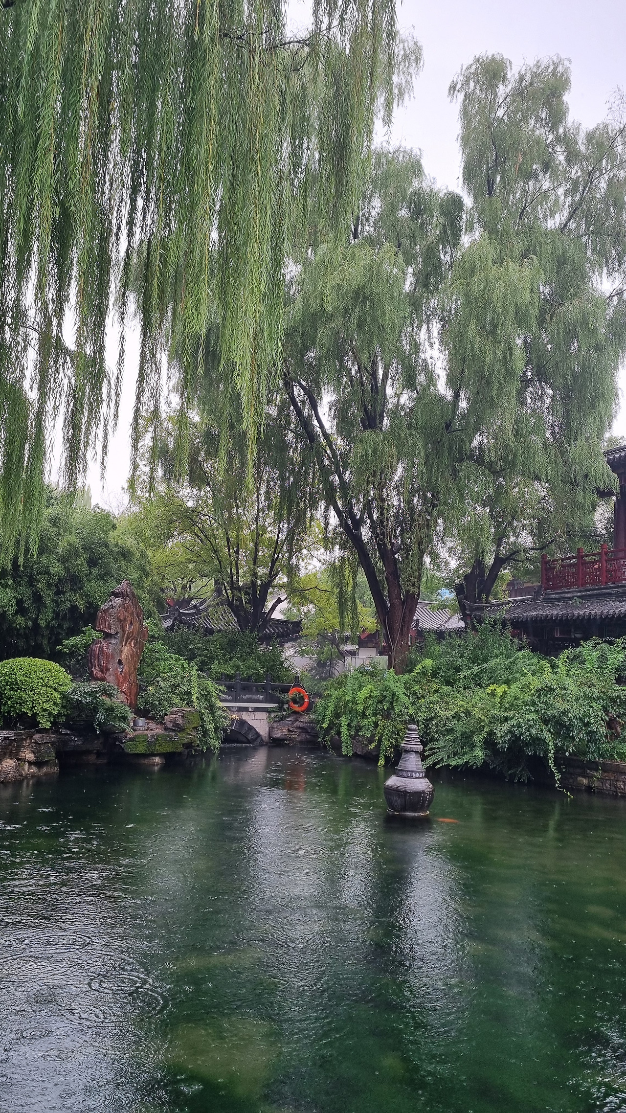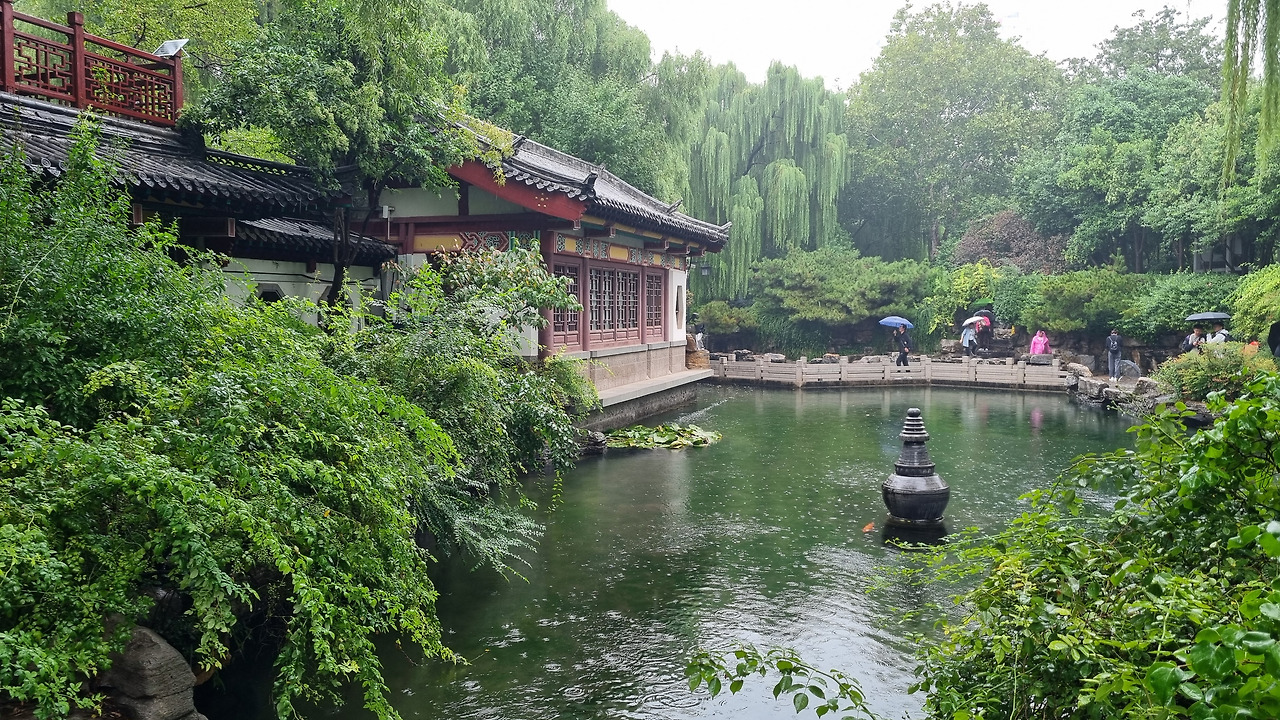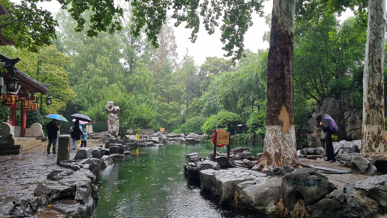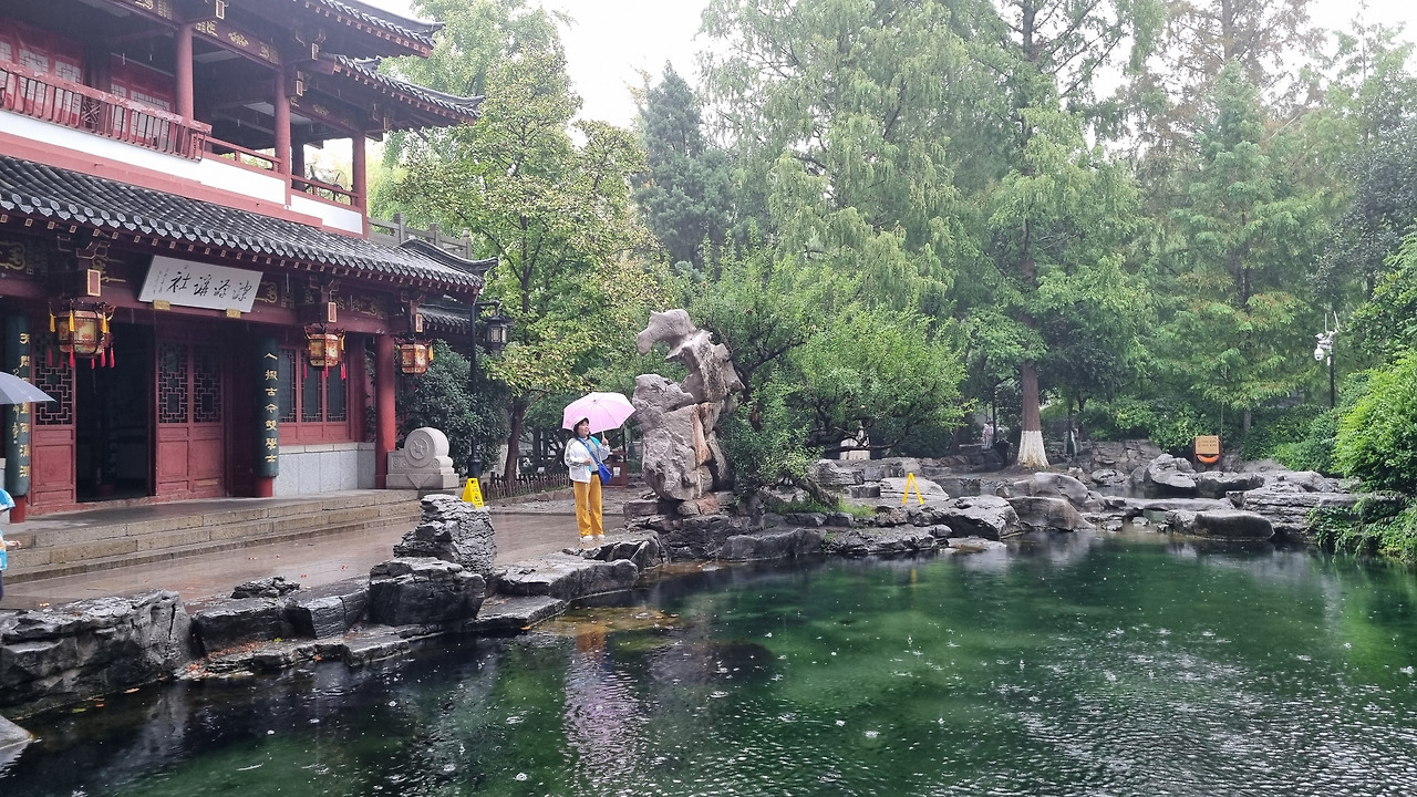 천하제일천 역시 입장료가 40위안이었으나, 경로 우대로 무료로 입장할 수 있었다. 입구를 통과하니 바로 표돌천이 나왔다. 비가 오는 날인데도 불구하고 표돌천 주위에는 사람들이 바글바글 몰려 제대로 구경하기 힘들 정도였다. 표돌천 큰 연못 아래에서 물이 솟아나는데, 물이 너무나 맑았다. 표돌천 주위는 수양버들이 늘어져 있었고, 연못을 감싸고 아름다운 건물들이 들어서 있었다. 연못과 건물, 그리고 수양버들이 어울려 환상적인 모습을 보여주었다. 정말 아름다운 샘이었다.