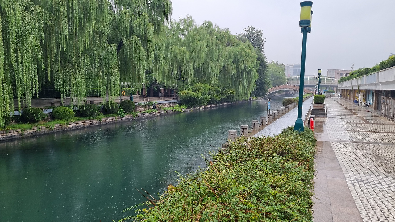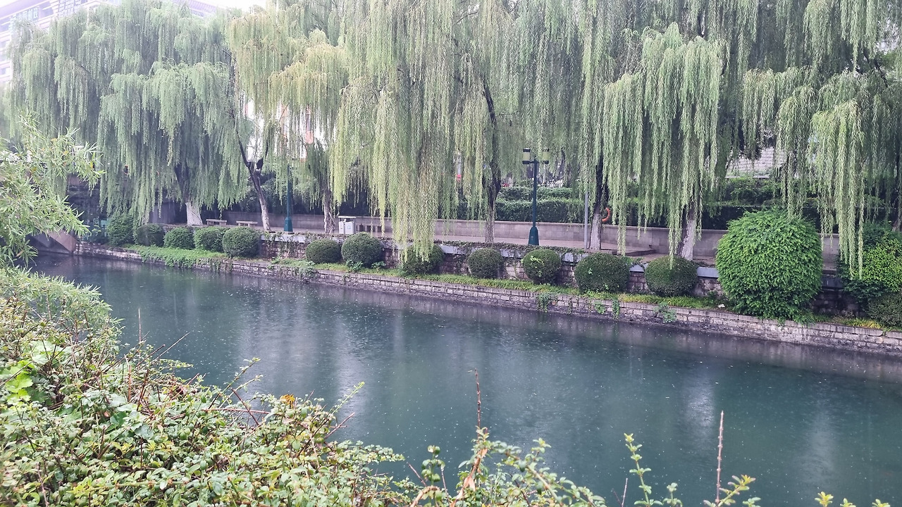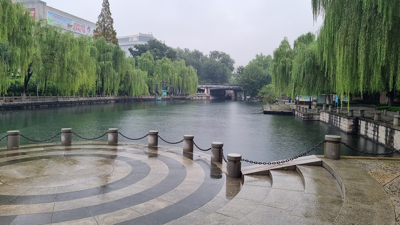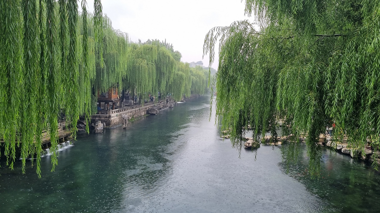 흑호천은 좁은 천(川)으로 흘러드는 샘이었다. 폭 30미터 정도의 아름다운 개천이 계속 연결되었다. 개천 주위는 수양버들이 늘어져 있었다. 우리나라에서는 요즘 버드나무를 보기 힘든데, 중국에서는 어디든 물가에 가면 가지가 축축 늘어진 버드나무가 서 있어 풍치를 아름답게 하였다.