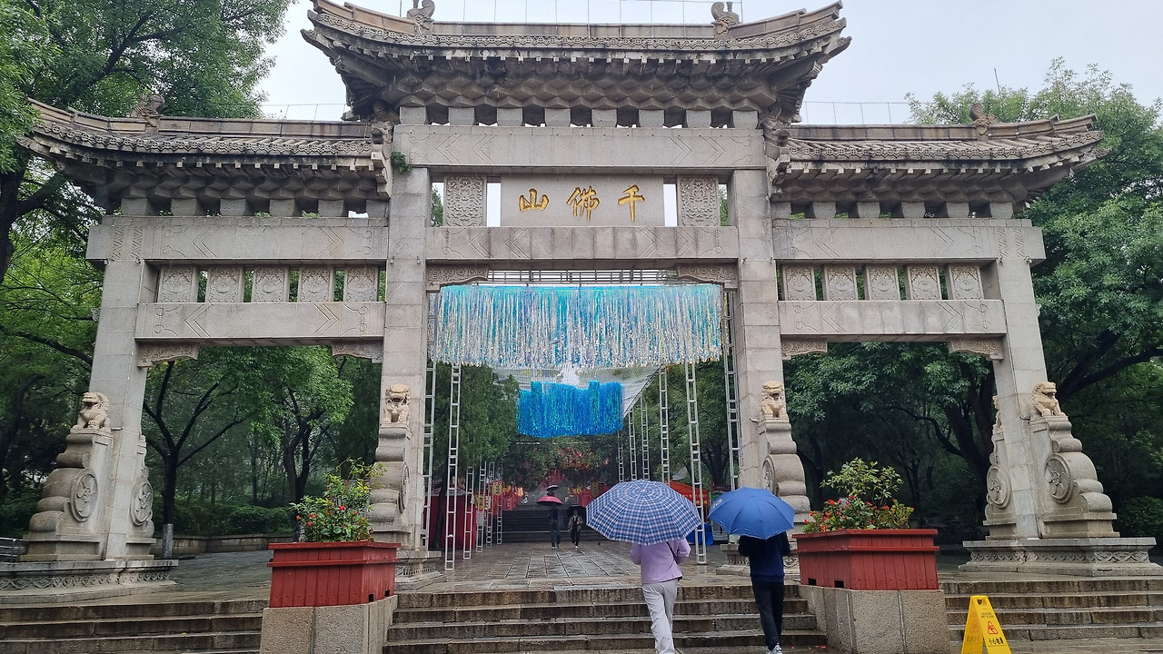 택시로 천불산에 도착하였다. 입장료는 40위안이라고 하는데, 경로 우대 혜택을 받아 무료였다. 큰돈은 아니지만 기분은 좋다. 천불산은 아주 나지막한 산이었다. 나중에 검색을 해보니 최고봉인 미륵봉이 해발 285미터라고 한다. 밖에서 보기에는 그다지 넓지 않아 보였는데, 입구를 통과하니 아주 완만한 계단길이 계속 이어졌다. 경사는 거의 없는 느낌이다.