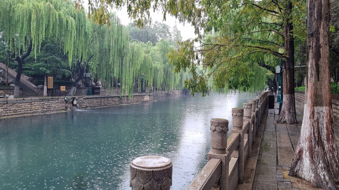 아침부터 비가 내리기 시작하였다. 이곳 제남에 온 가장 큰 목적은 태산(泰山)에 가기 위해서였다. 그런데 빗속에서 산에 갈 수는 없다. 시내 가까운 곳을 관광하기로 하였다. 제남의 관광 명소를 검색하면 가장 먼저 뜨는 것이 표돌천(趵突泉, 바오투추엔)이며, 다음이 천불산(千佛山)이다. 천불산은 대명호(大明湖)와 표돌천(趵突泉)과 함께 "제남 삼대 명승"으로 불린다고 한다.