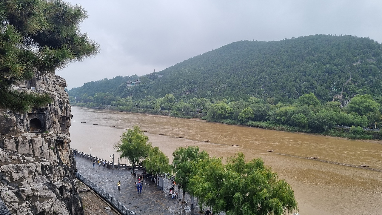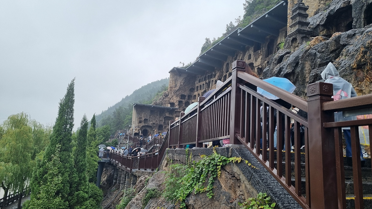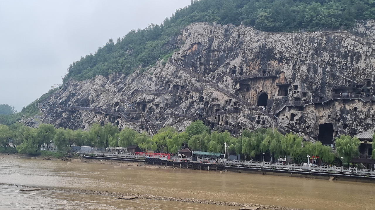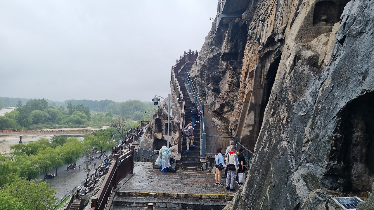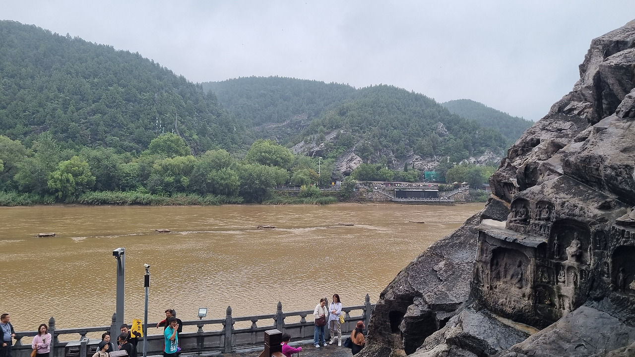석굴도 좋지만 그 앞을 흐르는 이하강도 절경이다. 한강의 반보다 조금 더 넓은 정도의 강인데, 누런색의 황톳물이 흐른다. 석굴이 있는 구간은 전체적으로 1킬로 정도 된다. 그렇지만 계단을 오르내려야 하기 때문에 생각보다 힘이 든다. 아마 걷는 거리로 치면 2킬로가 훨씬 넘을 것이다. 다행히 날씨는 잔뜩 흐리지만 비는 내리지 않는다. 만약 비까지 내린다면 위험해서 이 길을 피해야 될지도 모르겠다.