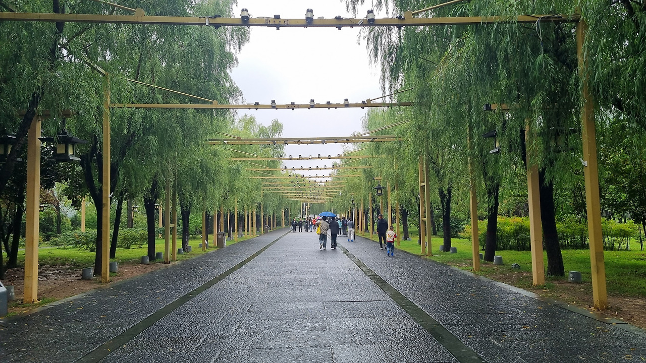 구태여 전동카트를 탈 필요가 없다. 상쾌한 아침 공기를 마시며 걷는 것이 훨씬 좋다. 용문석굴 구역까지는 조경이 잘 된 숲길이다. 숲길을 걷는 발걸음이 가볍다. 아주 상쾌하다.