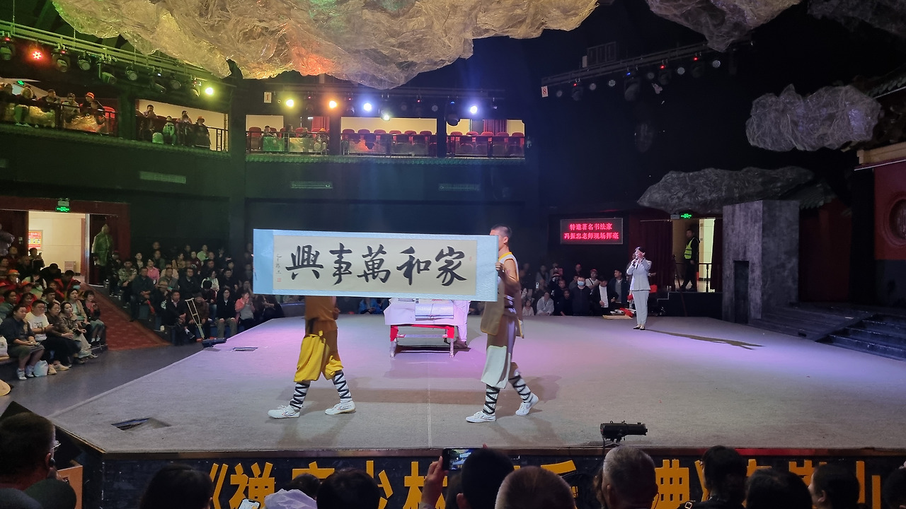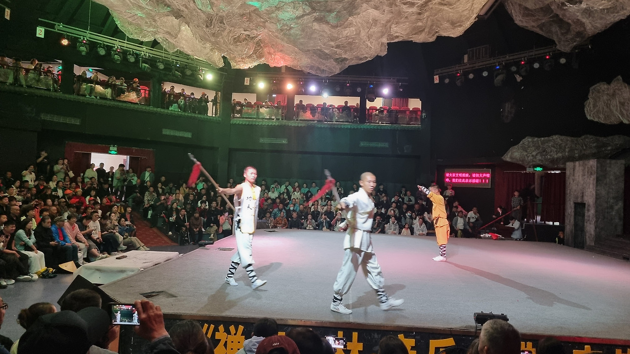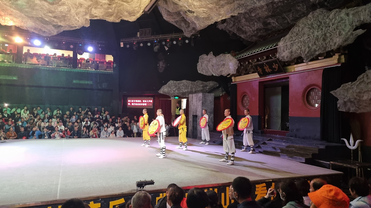 입구를 통과하여 얼마간 걷다 보면 오른쪽에 소림무술 공연장이 있다. 공연장 관람료는 입장료에 포함되어 있다. 한 번에 40분 정도 하루에 여러 차례 무술 공연을 한다고 한다. 드디어 소림 무공을 직접 내 눈으로 확인할 기회가 왔다. 소림사에 가면 넓은 연무장에서 벌어지는 소림 제자들의 집단 수련 현장을 볼 수 있을 것으로 생각했다. 그러나 유감스럽게도 무술 공연은 실내 공연장에서 한단다.