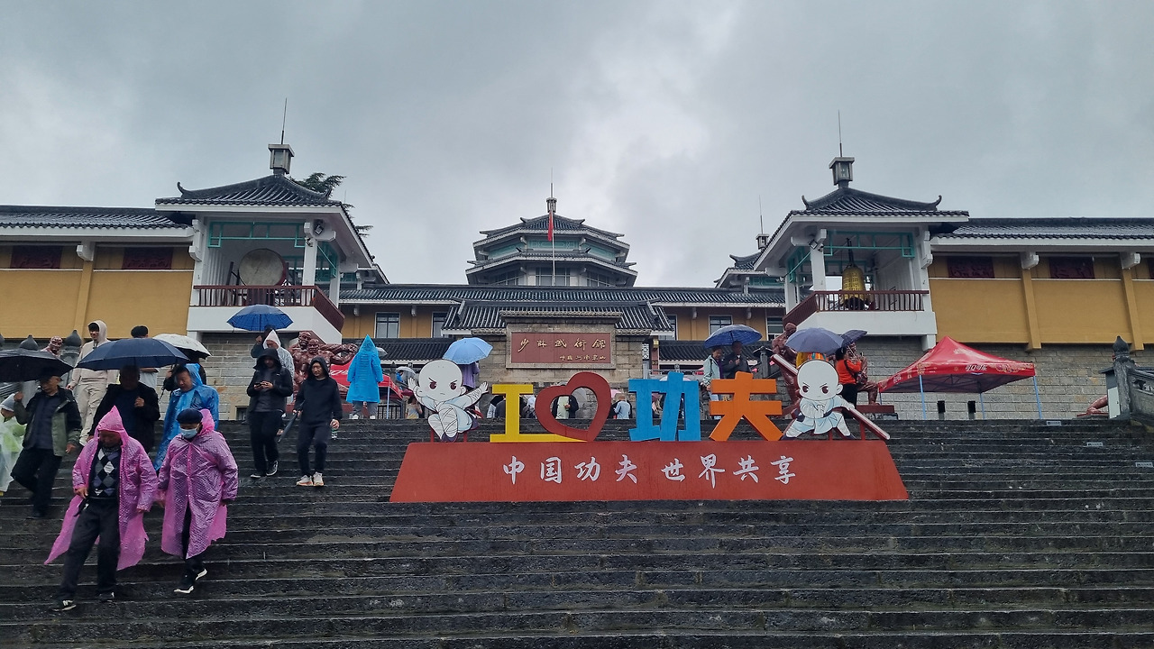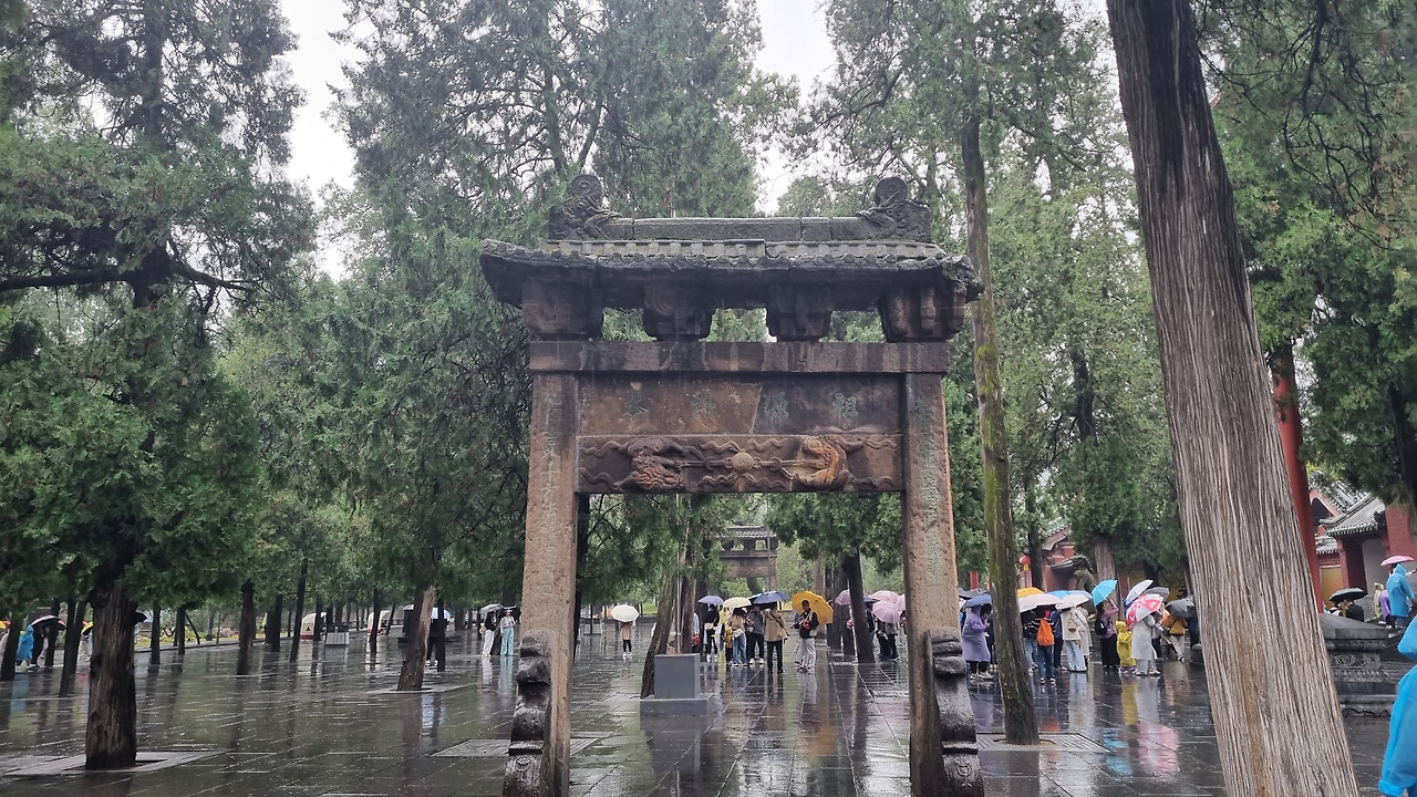 가이드와는 커뮤니케이션이 전혀 되지 않는다. 통역기를 통해서 겨우 의사를 주고받을 뿐이다. 소림사 입구에는 화강암으로 만든 큰 문이 있다. 그리고 옆에는 소림무술을 상징하는 조형물이 서있다. 소림사 관광구역 입구에서 소림사 절까지는 거리가 꽤 된다. 그래서 걷기가 싫은 사람은 유료로 운행되는 전동카트를 이용하면 된다.