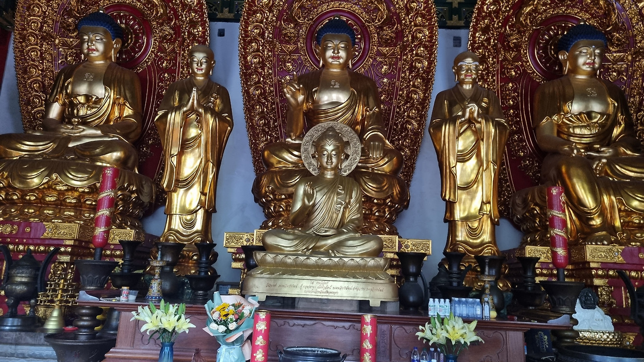 무술공연을 관람한 후 소림사 본원으로 향했다. 생각 외로 규모는 그다지 크지 않았고, 전각도 많지 않았다. 우리나라의 중간 규모의 사찰보다도 전각수는 오히려 적은 듯한 느낌이었다. 천왕전을 지나면 곧바로 대웅보전이 나온다. 대웅보전 역시 그다지 크지는 않았다. 우리나라 절들은 대웅전에 신발을 벗고 들어가고, 안에서도 기도 외의 다른 행동은 자제하도록 하고 있다. 그런데 이곳에서는 신발을 신은 채로 대웅보전에 들어가며 사람들은 대웅보전 안 이곳저곳을 돌아보기도 하고 사진도 찍고 한다.