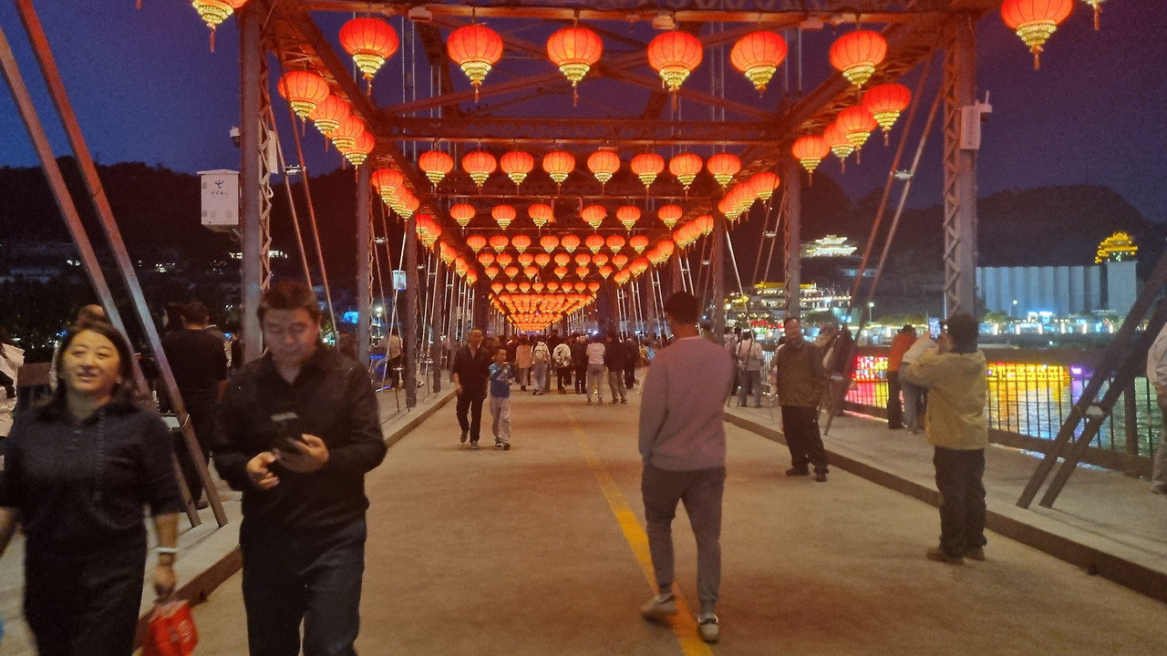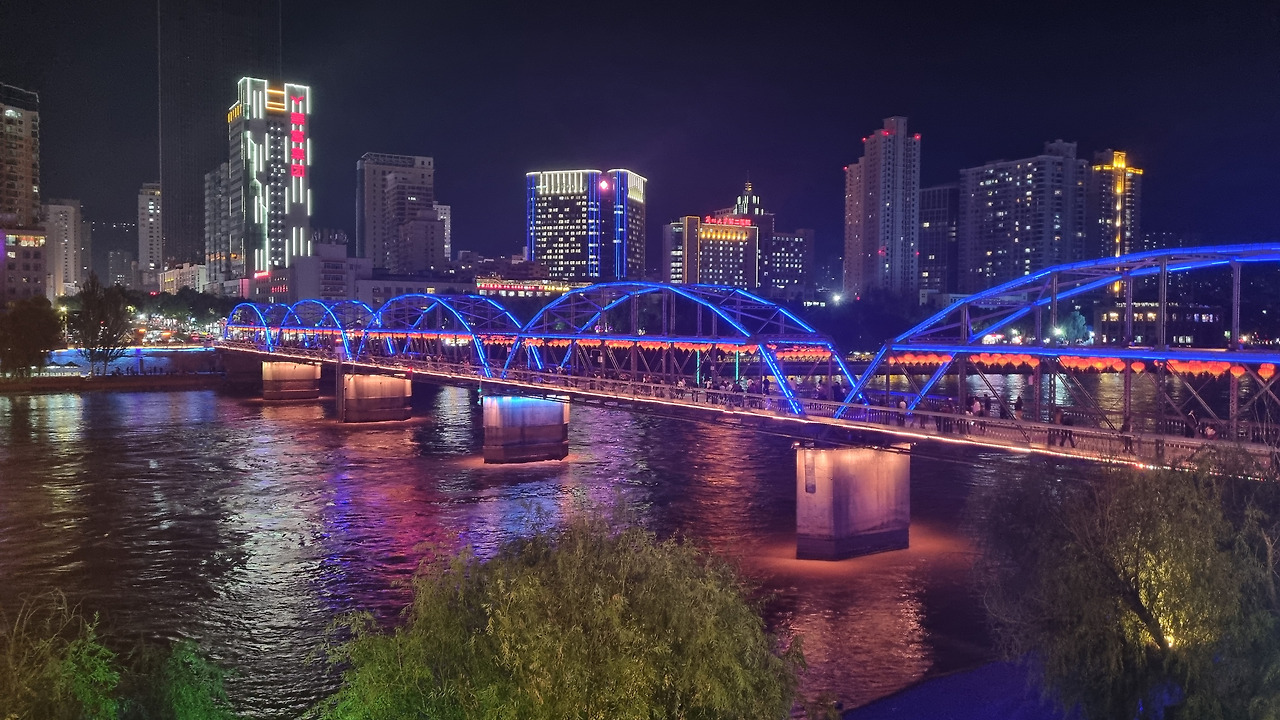 황량한 황톳빛 벌판을 흐를 것이라 생각했던 황하는 빌딩숲 사이로 흐른다. 강위로는 화려한 조명의 유람선이 떠다니고 있다. 보행자 전용 철교인 중산교는 오가는 사람들로 바글바글하다. 중산교 건너편 백탑신에는 날아갈 듯한 중국 전통 스타일의 건물들이 화려한 조명을 뽐내고 있다. 황하 위에는 여러 척의 유람선들이 떠다니고 있다. 상상과는 너무나 다른 풍경들이다.