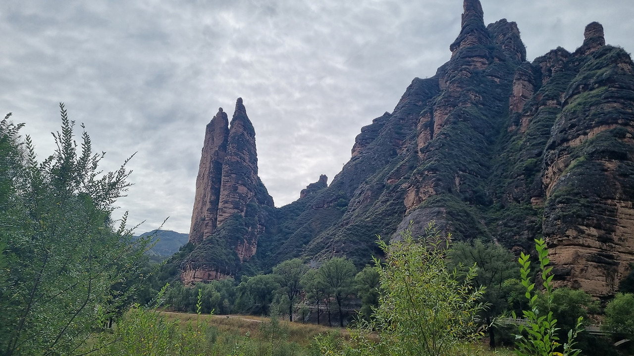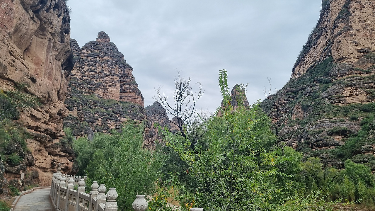 얼마 후 병령사 입구에 도착했다. 비는 그쳤다. 택시 기사와는 2시간 30분 후에 이곳에서 만나기로 하였다. 택시에서 내리니 바다와 같은 호수 저편에 누런 황토색의 바위가 병풍처럼 서있다. 나중에 확인해 보니 “병령석림”이라 한다. 병령석림은 황토고원에서 형성된 단층 석림으로, 빨간색 사암이 오랜 세월 풍화와 침식作用을 받아 마치 돌로 된 숲처럼 우뚝 솟은 모습을 하고 있다. 병령석림은 안으로 들어가면 형태가 다양하고 길이 마치 미로와 같아서 "지상의 사막미궁"(地上沙漠迷宫)이라 불린다고 한다. 산 형태가 카르스트 지형과 비슷하여 확인을 해보니 카르스트 지형이 아니라 황토흙의 침식 작용에 의해 생긴 지형이라 한다.