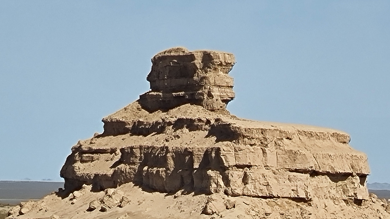 이단지질고뭔은 광활한 사막 위에 마치 서부영화에 나올 법한 기기묘묘한 모습의 흙기둥과 바위들이 떠있는 모습이다. 사막과 서부의 누런 바위산을 합해 놓은 것 같다. 이 자연의 구조물들은 흙과 사암으로 이루어져 있다고 한다.