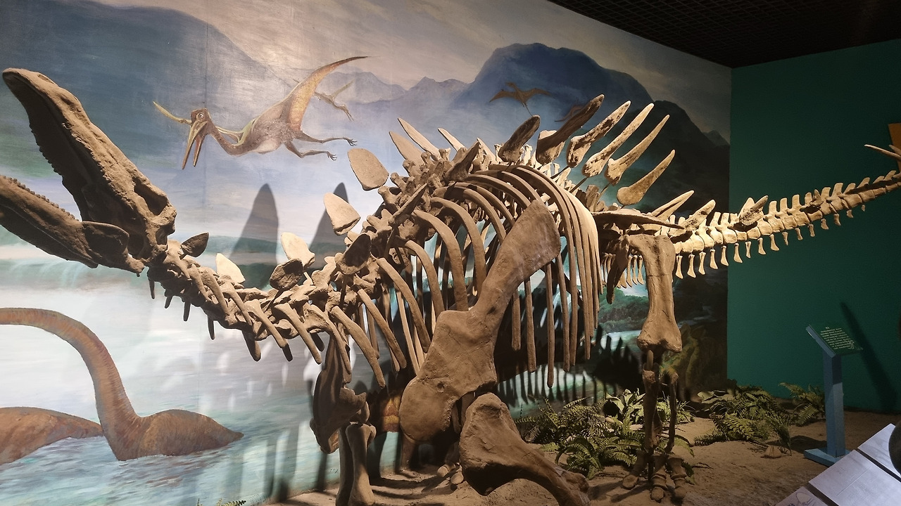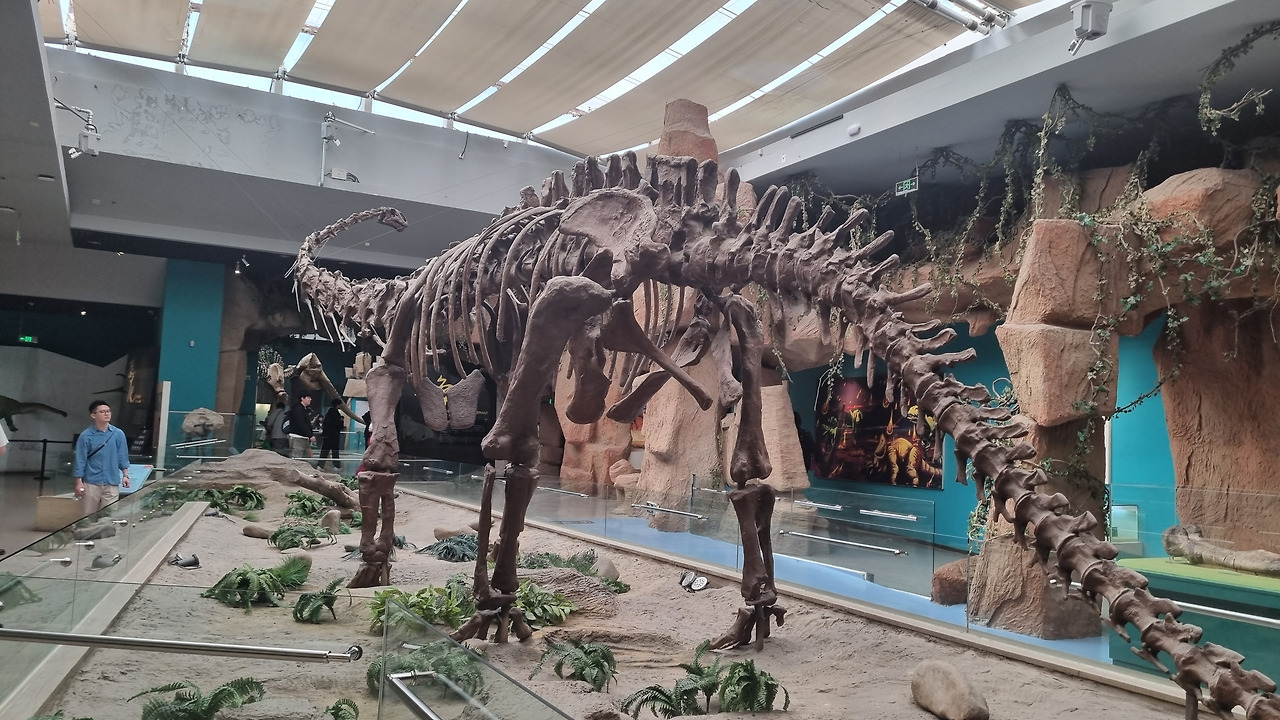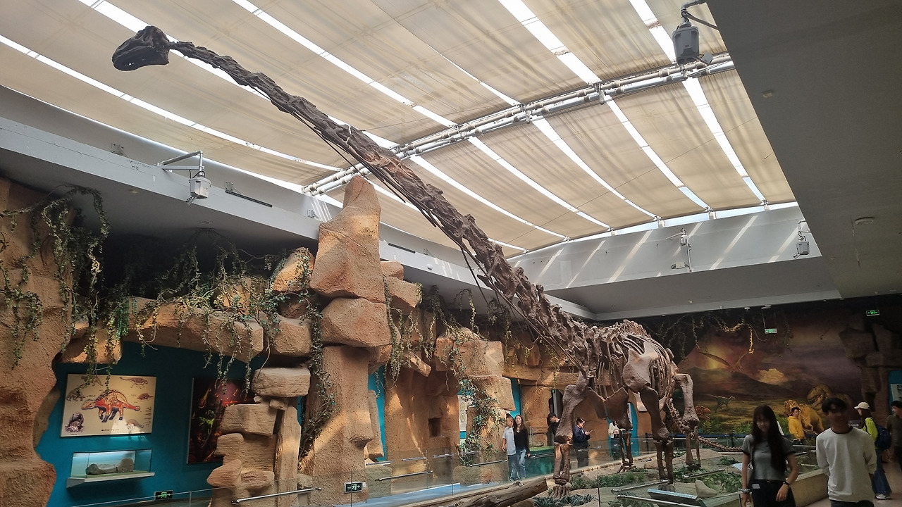 다음은 고생물관이다. 삼엽충, 암모나이트를 비롯하여 다양한 고대생물이 전시되어 있다. 대부분 작은 생물 화석이었으나, 황소보다 더 큰 검룡 화석이 볼만했다. 그 외는 별로 볼 것도 없다는 생각으로 나오는데, 다음 전시관에 고생물관의 하이라이트라 할 마멘치사우르스의 전신 골격이 보인다. 마멘치사우루스(Mamenchisaurus)는 중생대 쥐라기 후기부터 백악기 전기까지 아시아 대륙, 특히 오늘날의 중국 지역에 서식했던 대형 초식 공룡이다. 마멘치사우루스는 지구 역사상 목이 가장 긴 동물 중 하나라고 한다. 이곳에 전시된 마멘치사우르스의 화삭은 몸길이가 15미터도 넘는 듯했다. 이건 정말 볼만하다.