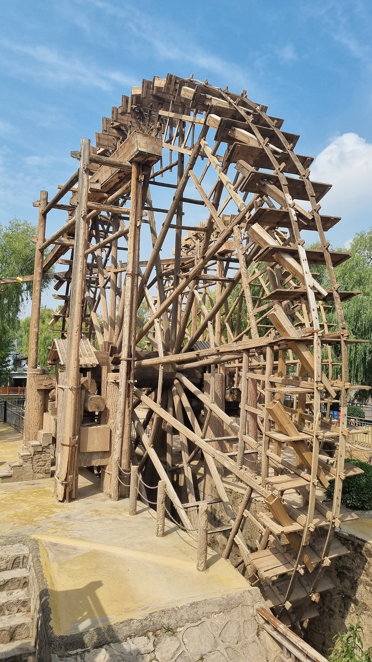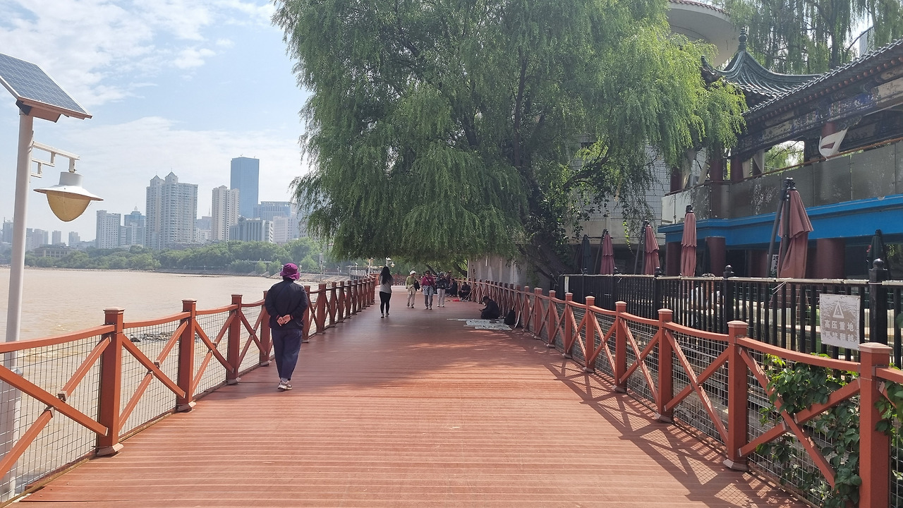 황하를 따라 산책로는 계속 연결된다. 탐방객은 그다지 보이지 않는다. 느긋하고 편안하게 산책을 즐길 수 있다. 산책로를 따라 한참 가다 보면 수차원(水車園)이 보인다. 물레방아처럼 보이는 수차를 복원해 전시한 공원이다. 여기서는 과거 황하에서 물을 퍼 올려 농업에 이용하던 방식을 보여주고 있다.
