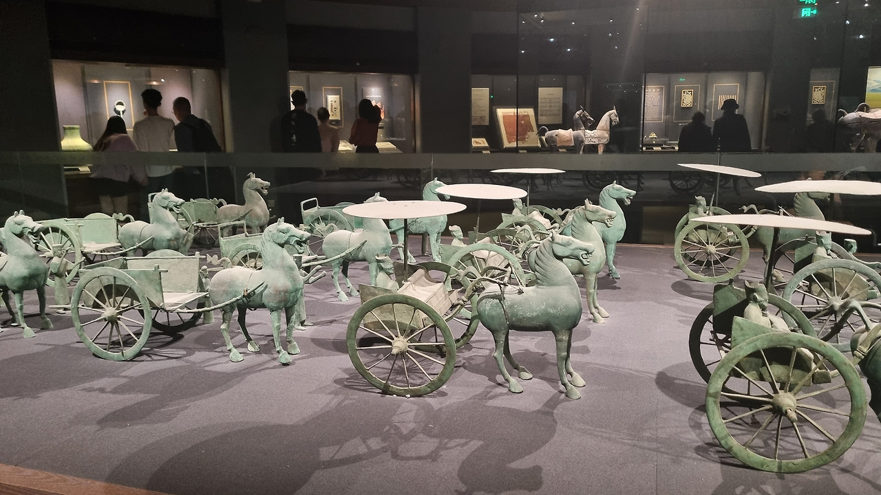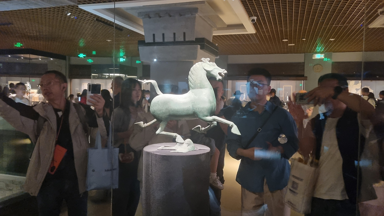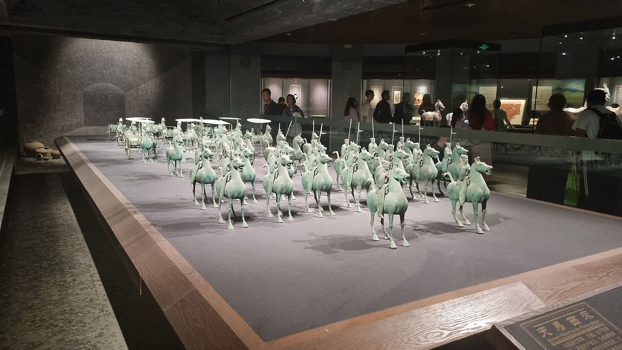 이어서 실크로드 유물관이 계속된다. 토기, 청동제, 철제 유물들이 다양하게 전시되어 있다. 대부분 기원전후 시기의 유물들이다. 거의 2000년이나 된 유물입에도 불구하고 보관상태가 아주 좋다. 이곳의 하이라이트는 마답비연(馬踏飛燕) 동상으로서, 중국 국가일급문물로 지정되어 있다. 이 동상의 정식 명칭은 동분마(銅奔馬), 즉 “구리로 된 달리는 말”이라는 뜻이다. 그런데 그 모습이 마치 하늘을 나는 듯 너무나 생동감 있게 그려져 있고, 또 그 말이 날다람쥐로 보이는 동물을 밟고 있다고 해서 그런 별명이 붙었다고 한다.