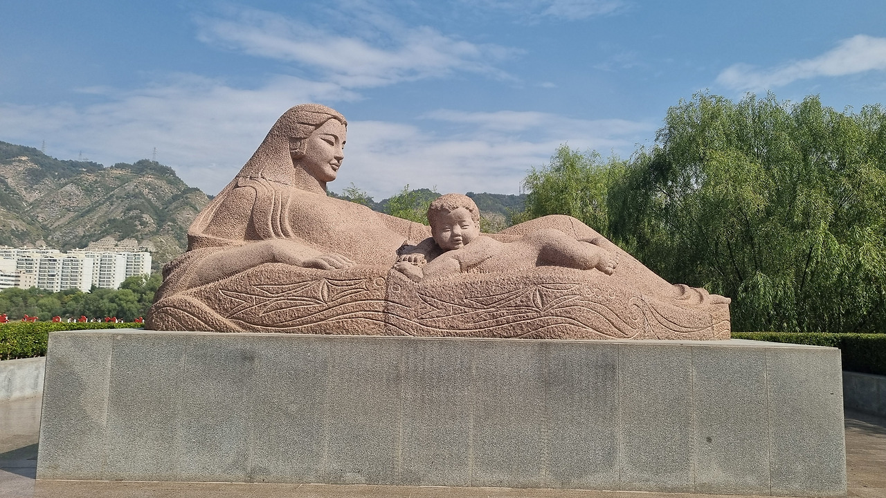 오늘 가는 곳은 황하풍경선에 설치된 “황하 어머니 조각상”이다. 이 조각상에 특별한 의미가 있어서가 아니라 이 근처의 산책로와 풍경이 좋다고 소개되어 있었기 때문이다. 택시로 먼저 황하 어머니 조각상으로 갔다. 아기를 안은 어머니의 모습을 한 거대한 조각상으로, 어머니는 황하를, 아기는 중화 민족을 의미합니다. 최근에 건조된 조형물이라 한다. 이 조각상을 지나면 바로 황하 산책로로 연결된다. 편하게 걸을 수 있도록 산책로가 아주 잘 정비되어 있다. 이쪽은 황하의 상류라서 그런지 강폭도 좁고 수량도 그다지 많아 보이지 않았다. 강물은 누르스름한 연한 황토색이었다.