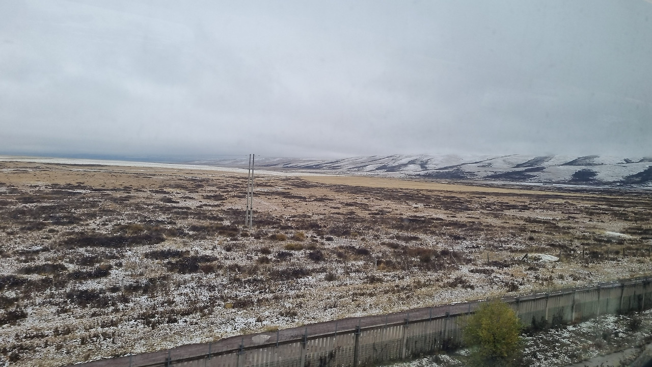 기차가 출발하여 두 시간 정도 달렸을까, 벌판은 하얀 눈으로 덮여있다. 내가 보는 올해 첫눈이다. 바깥 온도는 섭씨 5도 내외이다. 며칠 사이에 기온이 뚝 떨어졌다. 지평선이 보이는 저 끝까지 하얀 눈이다. 8시간의 오랜 기차여행이었지만 올 때보다는 덜 지루하다.