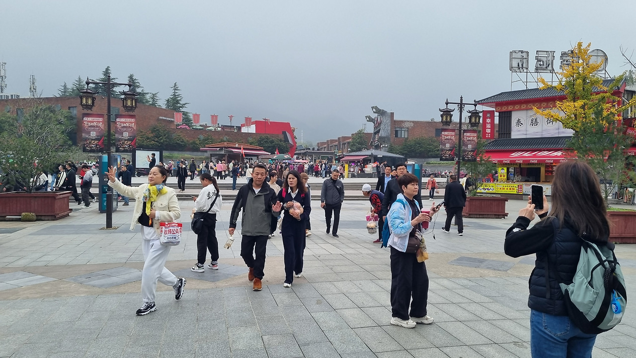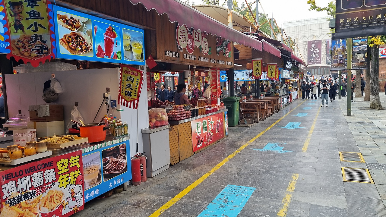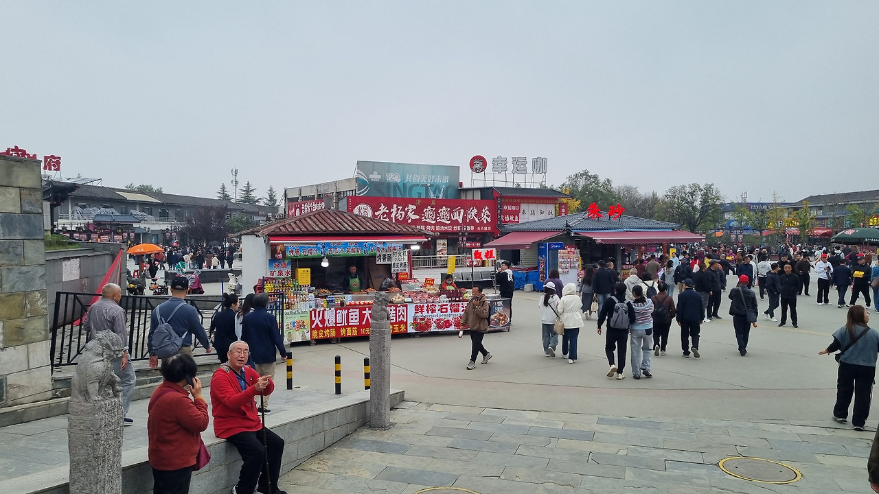 이번에도 지금까지 상상했던 병마용 입구 분위기와는 달랐다. 병마용은 중국의 국가적 보물이므로 그 주위는 엄숙하고 경건한 분위기일 걸로 생각했다. 그러나 실제는 각종 기념품점, 식당, 정체를 알 수 없는 크고 작은 공연장 등 수많은 업소와 이에 더하여 노점상까지 그야말로 도떼기 시장 같은 분위기였다. 사람들이 어지럽게 뒤섞여 있다.