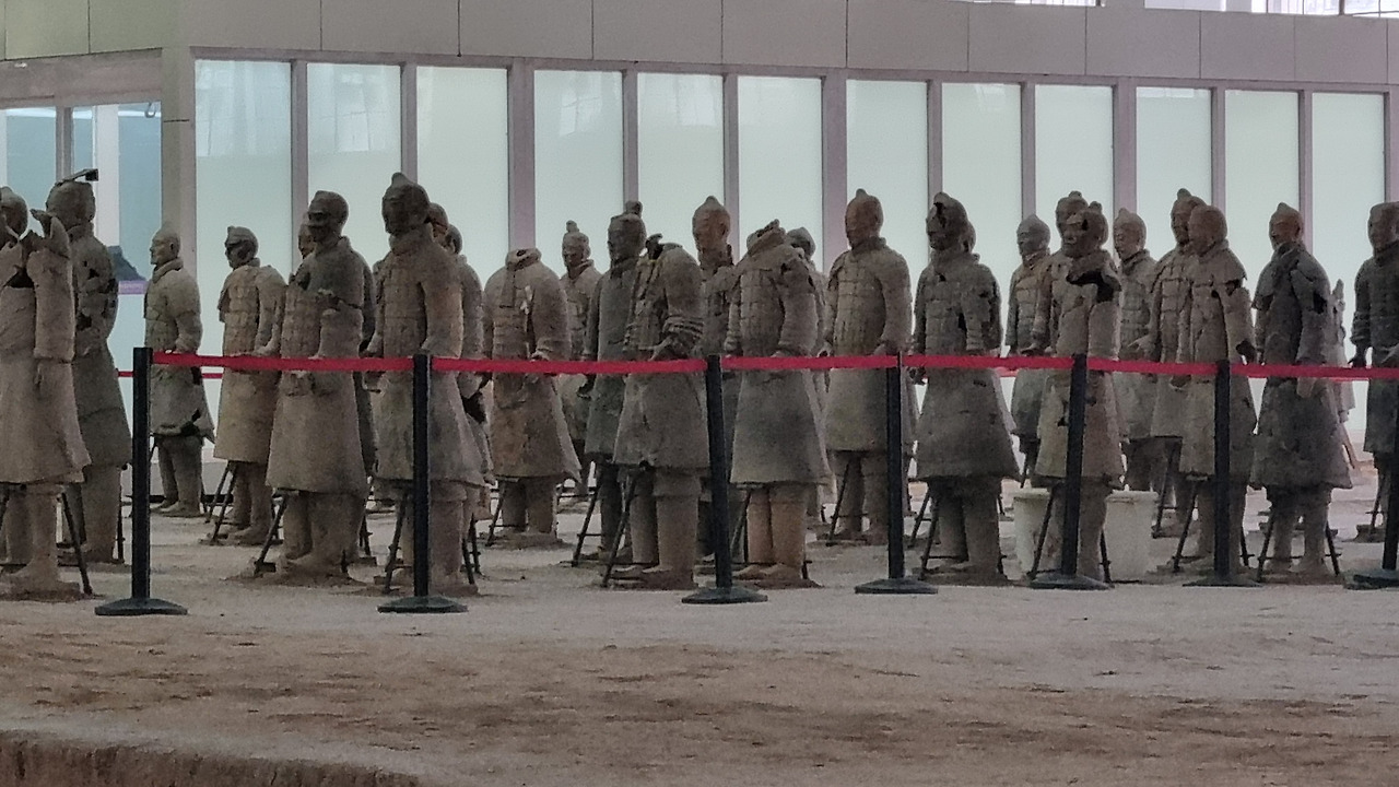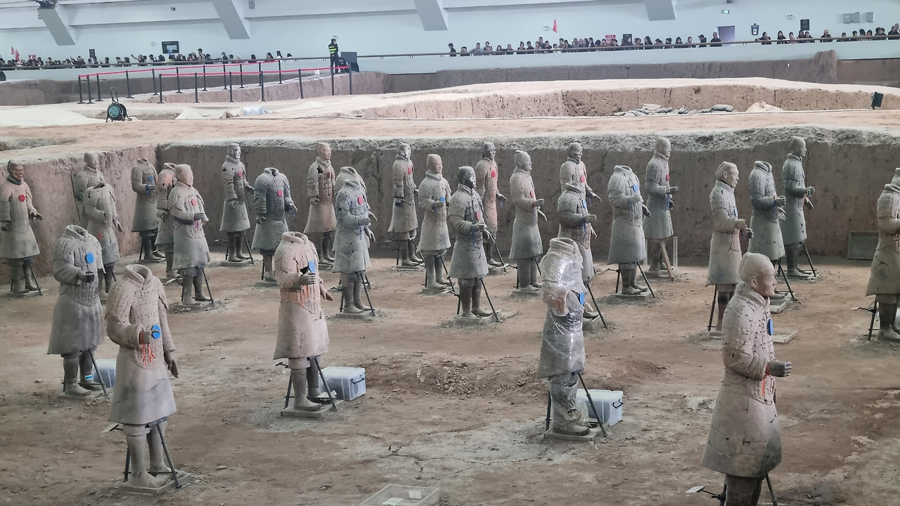돌아가는 차량과는 오후 5시에 만나기로 했으니 지금부터 거의 4시간 가까이 남았다. 빨리 관람을 끝내봤자 할 일이 없다. 관람객이 많으니 병마용을 잘 볼 수 있는 난간에 자리를 잡기 어렵다. 우리는 시간이 충분하므로 뒤에서 기다렸다가 난간에 자리가 나면 들어가 시간을 두고 천천히 관람했다. 이곳을 찾는 사람들은 거의가 단체관광객들이다. 그들은 가이드를 따라 빨리 움직여야 하므로 조금만 기다리면 난간에 빈자리가 난다.