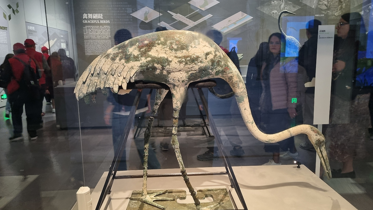 별 것 없어 보여 대충 보고 나오려는데, 중간 이후 보관상태와 작품성이 좋은 병마용들이 전시되어 있다. 유리 상자 안에서 조명을 받으며 서있는 병마용들은 또 다른 느낌을 준다. 병마용들은 대개 키가 180센티 이상으로 보인다. 그 시대라면 장정들의 평균키는 160센티를 넘지 않았을 텐데, 큰 키로 용맹함을 강조하려 했나라는 생각이 든다.
