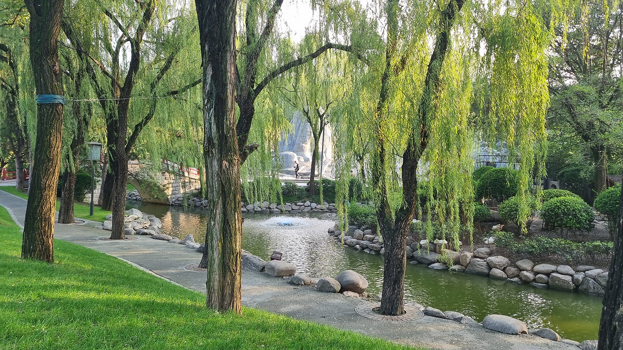 예상대로 집사람으로부터 전화가 왔다. 이제 어느덧 해도 지려 한다. 셀카로 이백과 함께 어깨동무를 한 사진을 찍고 입구 쪽으로 서둘렀다. 이곳 시혼 지구는 아주 이곳 부용원의 최고의 장소가 아닐까 생각한다.