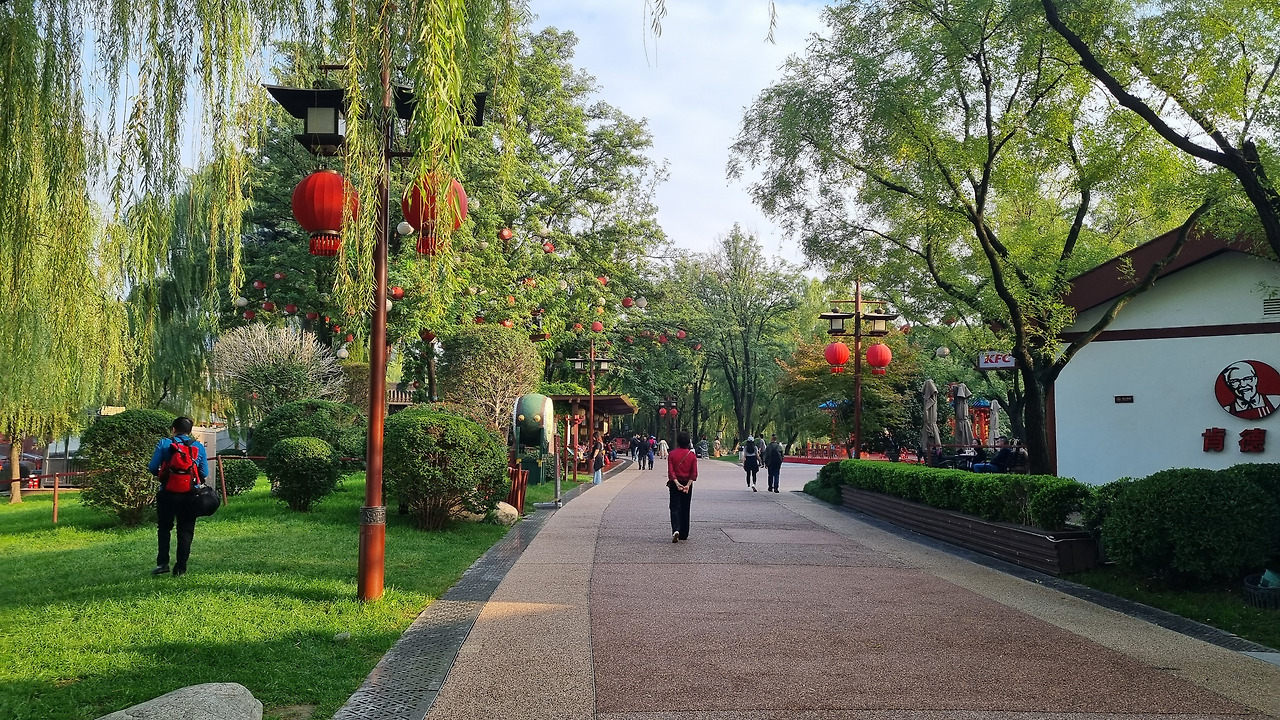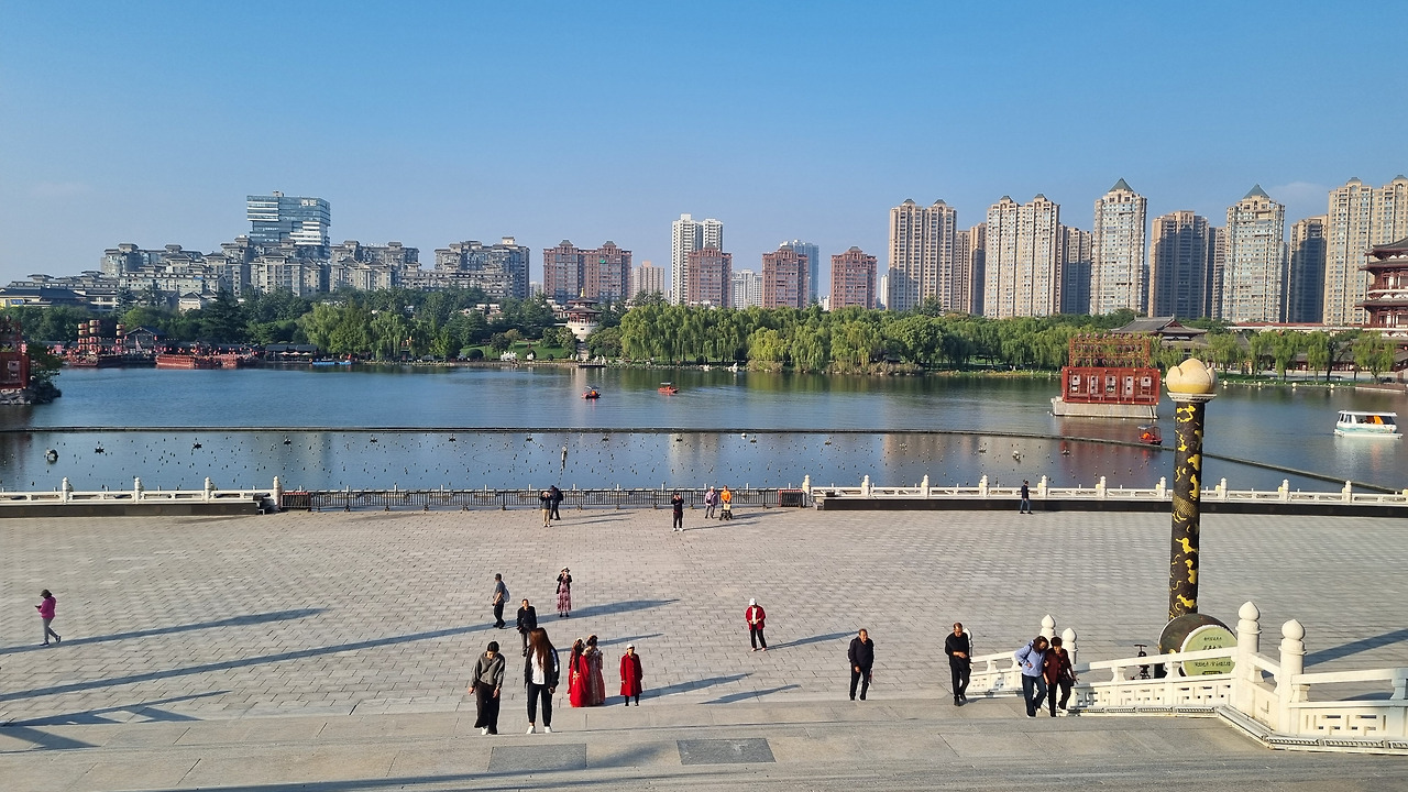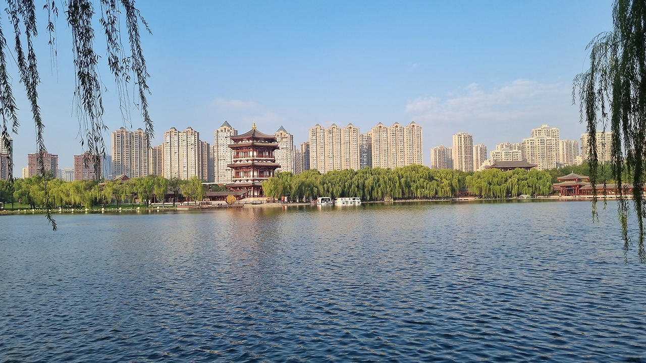 자운루를 지나니 호수 옆으로 상가 건물들이 보인다. 이곳에는 상가 건물들도 호수의 경치와 어울리게 당나라 스타일의 건축되어 있다. 수양버들이 늘어선 사이로 들어선 몇 개의 상가 건물은 문화재의 일부인 듯 오히려 호수의 경치를 더해준다.