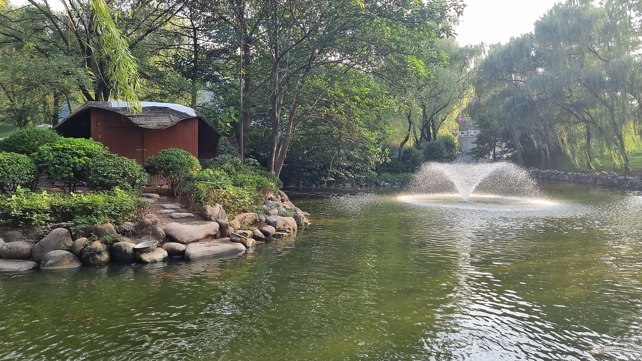 자운루 앞으로 오니 분수가 부용호의 분수가 물을 뿜고 있다. 자운루 쪽에서는 음악이 흘러나온다. 음악소리에 맞추어 분수가 춤을 춘다. 격렬한 멜로니가 흘러나오면 격렬하게 조용한 멜로니가 흘러나오면 은은하게, 그리고 부드러운 음악에는 분수가 너울너울 춤을 춘다. 노래하는 분수는 몇 번 본 적 있지만 춤추는 분수는 처음이다.