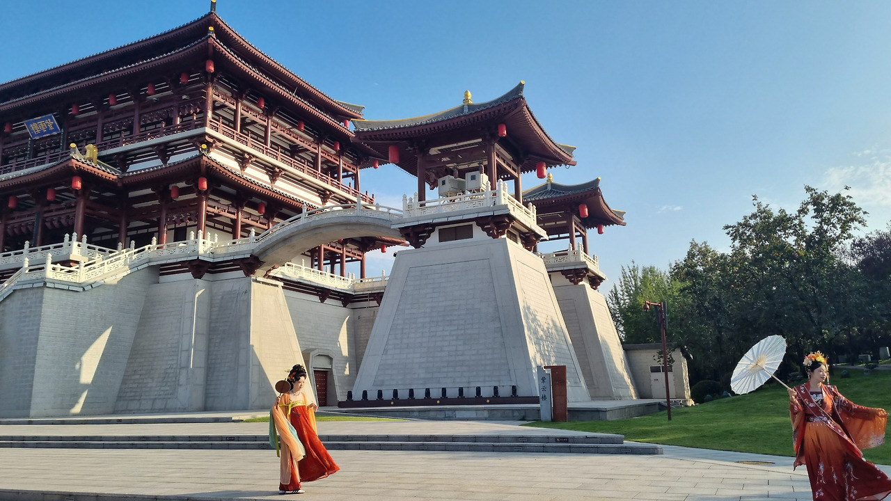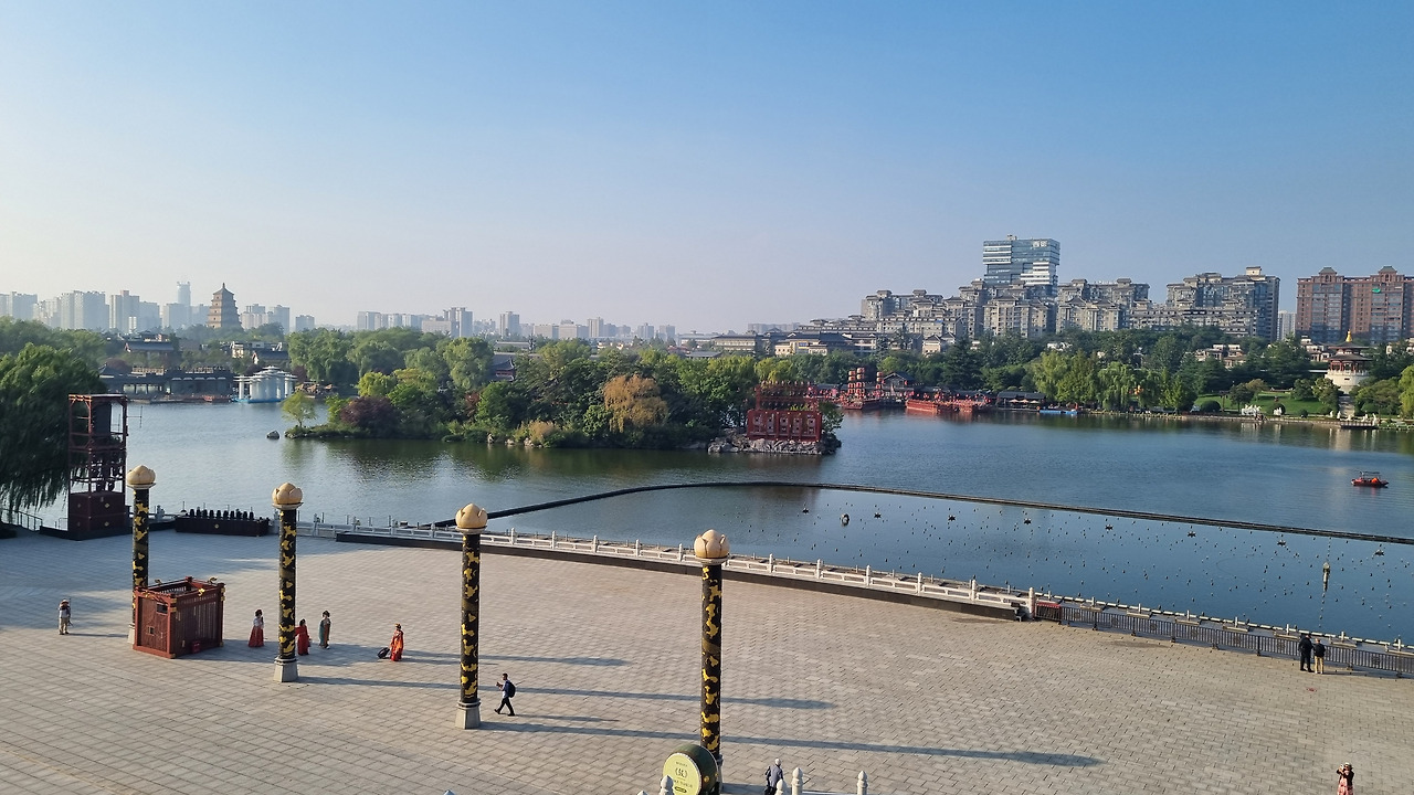 자운루로 올라갔다. 상당한 높이가 되기 때문에 대당부용원의 전체 모습이 한눈에 들어온다. 참 아름다운 테마공원이다. 그동안 중국에서 경험한 몇 개 테마공원은 좀 엉성하고 싸구려라는 느낌이 들었는데, 이 대당부용원은 다르다. 앞으로 많은 세월이 지나면 이 대당부용원은 시안의 새로운 문화유적이 될 수 있을 것으로 생각된다.