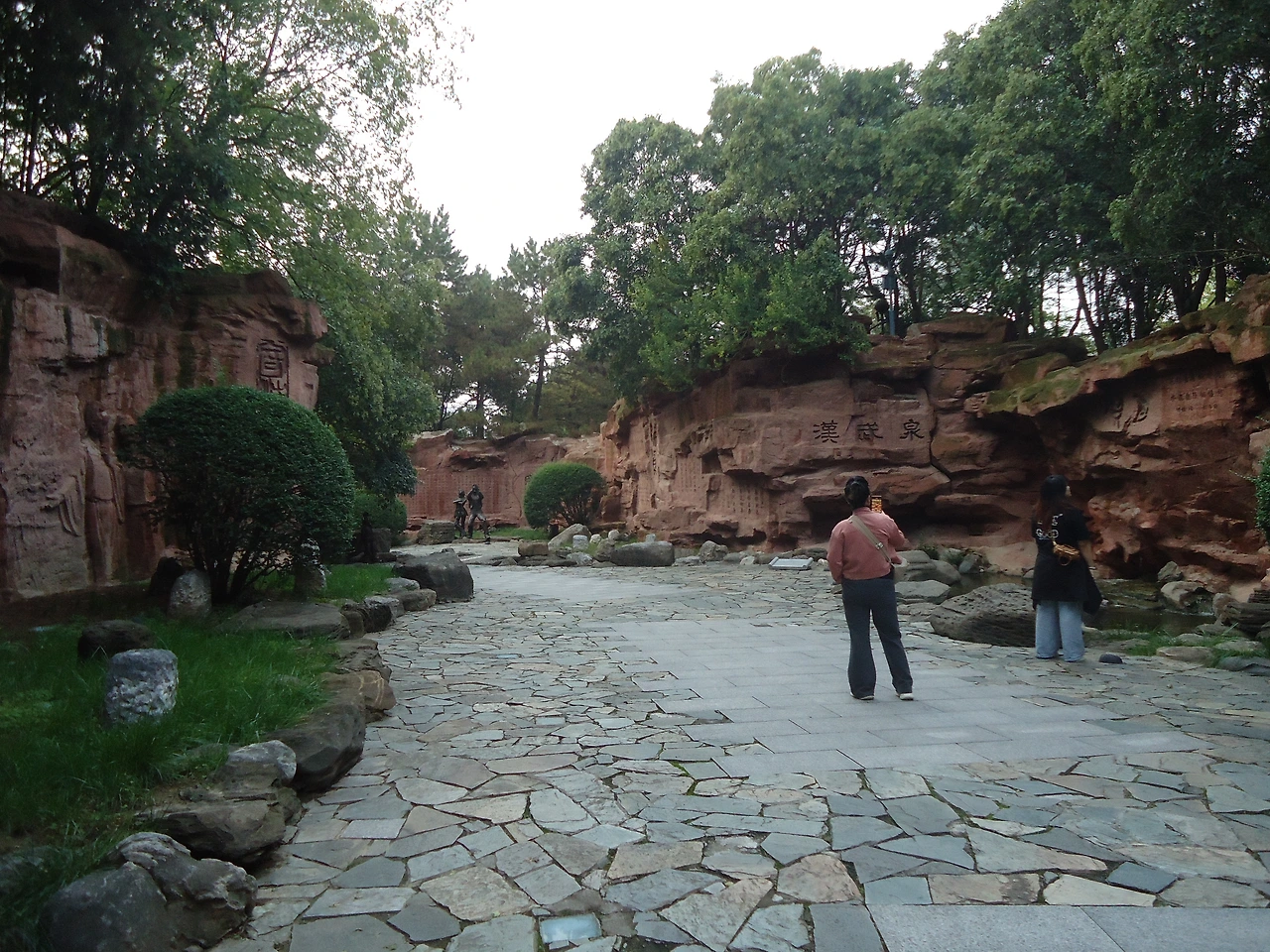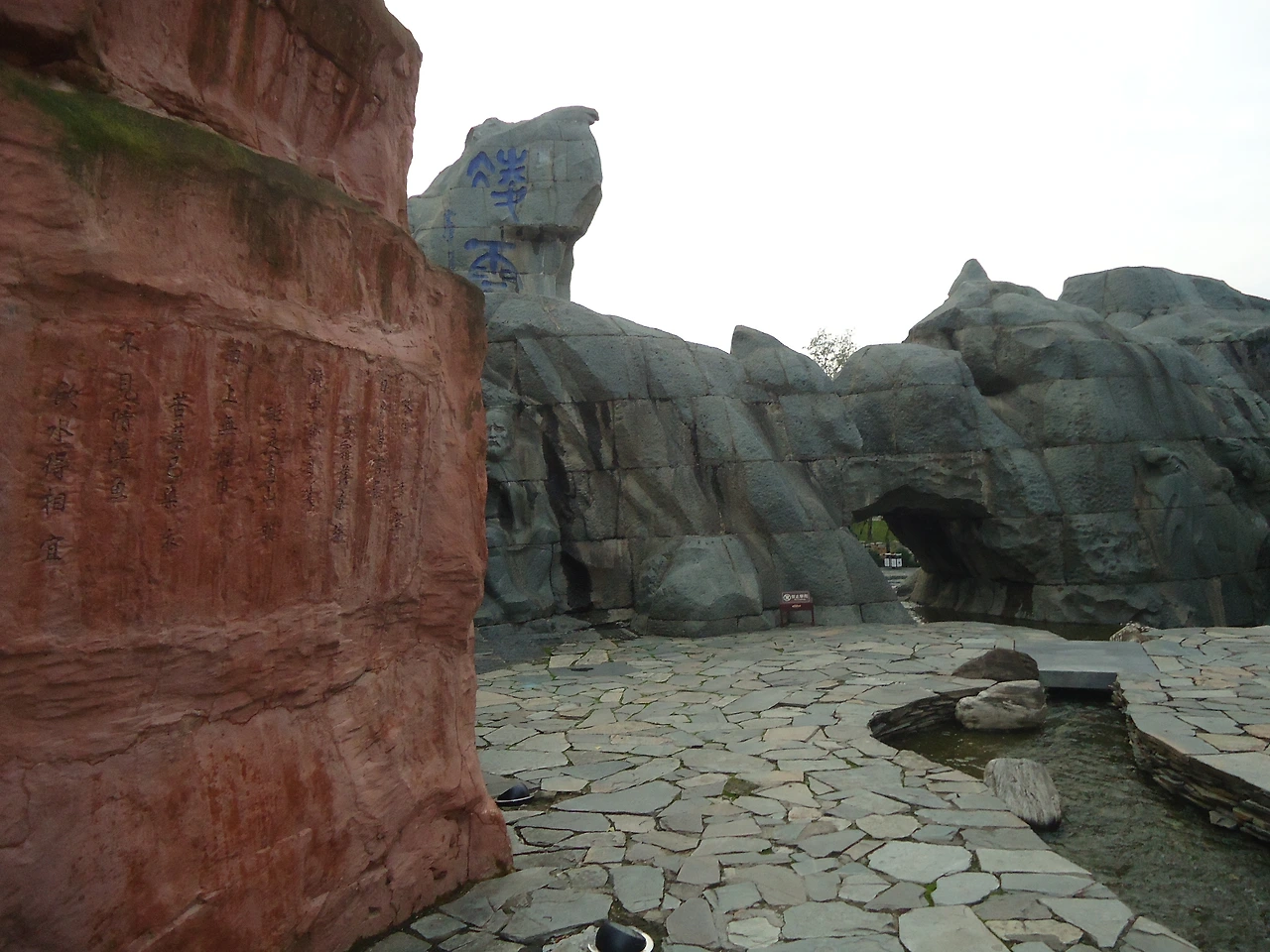 이곳을 지나니 제법 큰 바위 구조물이 보인다. 마치 미국의 러시모어 산의 큰 바위 대통령 조각을 축소해 놓은 듯한 인공 석상들인데, 새겨진 인물들은 모두 당 시대의 시인들이다. 이 테마 지역의 이름은 당시원(唐詩苑)으로서, 당시와 관련한 여러 조형물이 전시되어 있다. 우선 석상에 조각되어 있는 인물은 이백, 두보, 백거이, 왕유, 이상은 등이라 한다. 이백과 두보의 별명은 시선(詩仙)고 시성(詩聖)이란 사실은 누구나 잘 알고 있을 것이다. 그런데 백거이는 시마(詩魔)란 좀 무시무시한 별명이고, 융유는 시불(詩佛)이란 별명을 얻었다고 한다.