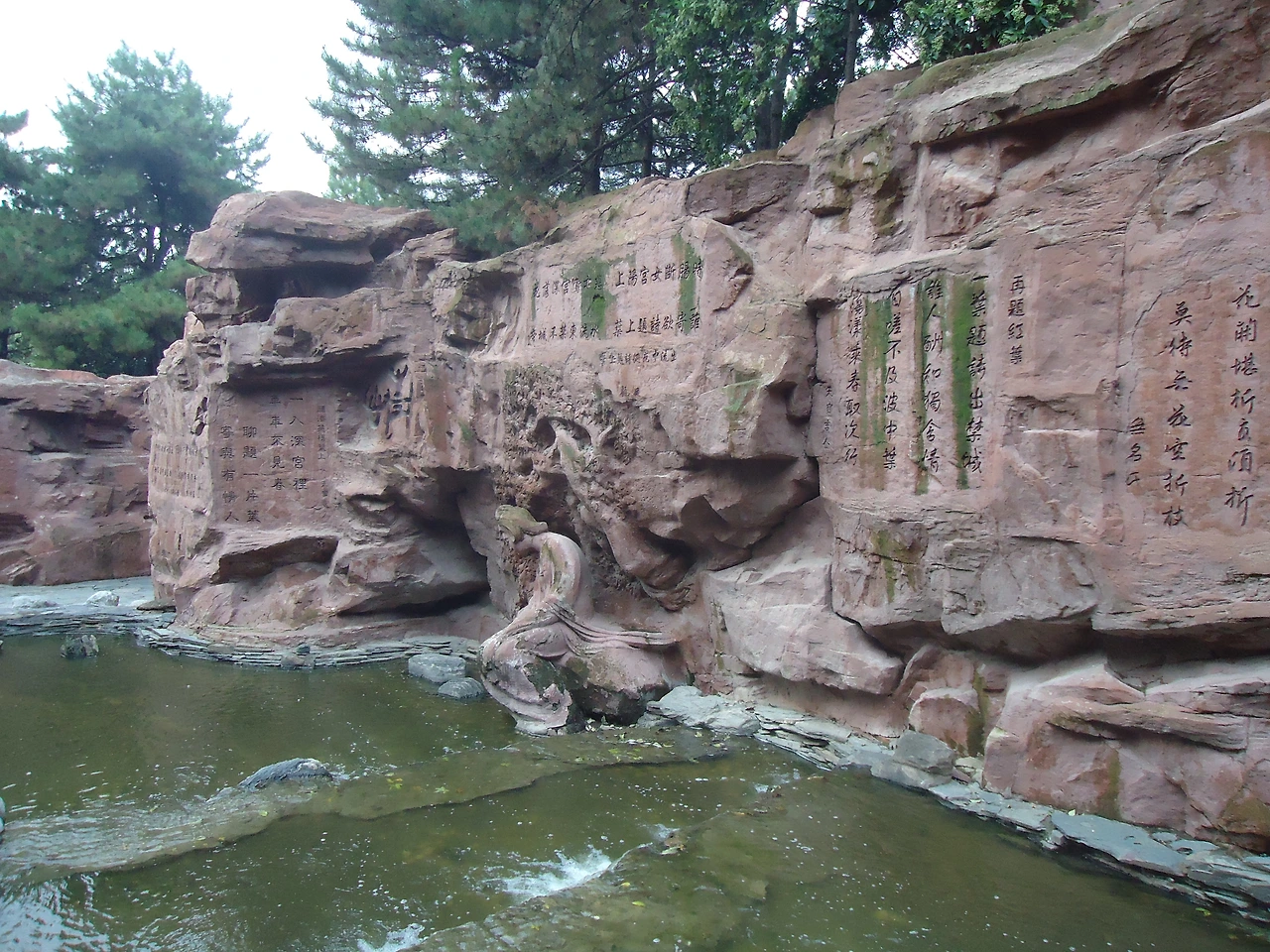 시벽은 전체적으로 약간 굽은 부메랑의 모습을 하고 있다. 양쪽 벽은 모두 바위이고 그 아래로는 작은 도랑물이 흐른다. 바위 벽면에는 수많은 당시들이 새겨져 있다. 일일이 세어본 것은 아니지만, 거의 수백 편은 될 것 같다. 물론 대부분은 내가 모르는 시이다. 인공적으로 만든 작은 돌 계곡이었지만 대당부용원의 최고 명승지라 해도 손색이 없다고 생각된다.