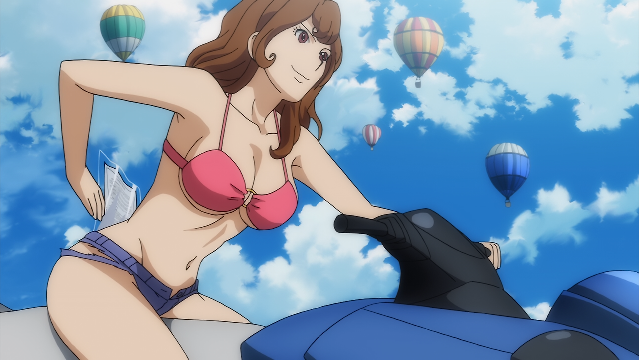 암스테르담 상공에서 샤하르타 공화국 개국 기념 파티가 열린 거대 비행선에 수많은 보물들이 전시된다. 이때 공중 도둑들이 나타나 가장 진귀한 보물인 수정(水晶)을 노리자, 파티에 잠입해 있던 루팡은 경비원으로 변장해 보물을 가로채기 위해 공중 도둑들과 쟁탈전을 벌인다. 공중 도둑 멤버 가운데 한 명인 젊은 미인 유티카와 가방을 뺏고 빼앗기는 와중에 루팡이 실수로 그녀의 가슴을 만지게 된다. 화가 난 유티카는 루팡의 따귀를 때리고, 루팡은 그 충격으로 가방과 함께 비행선에서 떨어진다.