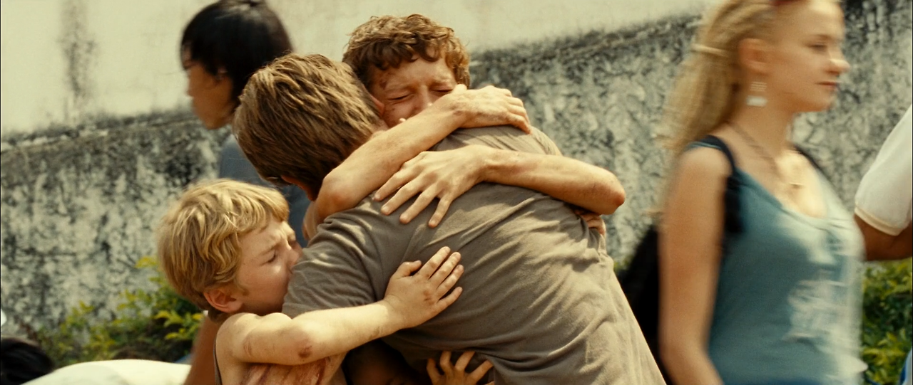얼마 뒤 헨리와 두 아이가 탄 차량이 병원에 도착한다. 사이먼이 소변을 보기 위해 먼저 내린다. 루카스는 멀리서 아버지를 알아보고 달려간다. 두 동생도 형을 보고 달려와 반갑게 안긴다. 헨리는 마리아가 병원에 있으며, 다리 부위에 추가 수술을 앞두고 있다는 사실을 알게 된다. 마리아는 마취로 잠들기 전, 자신이 경험했던 공포의 경험을 회상한다.