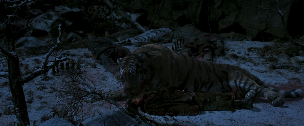 산군이 물러간 후 포수들과 일본군이 사태를 수습하기 위해 다시 사고 현장으로 올라왔다. 구경은 중상을 입고 쓰러져 있는 석을 발견하지만 그를 데려가지 않는다. 도처에 널브러져 있는 시체들을 먹으러 늑대들이 몰려왔다. 늑대 떼는 석의 시신을 발견하고 그를 자신들의 집으로 끌고 간다. 그때 산군이 나타나 늑대들을 물리치고 석의 시신을 물고 간다.