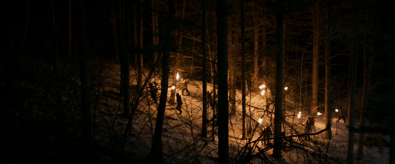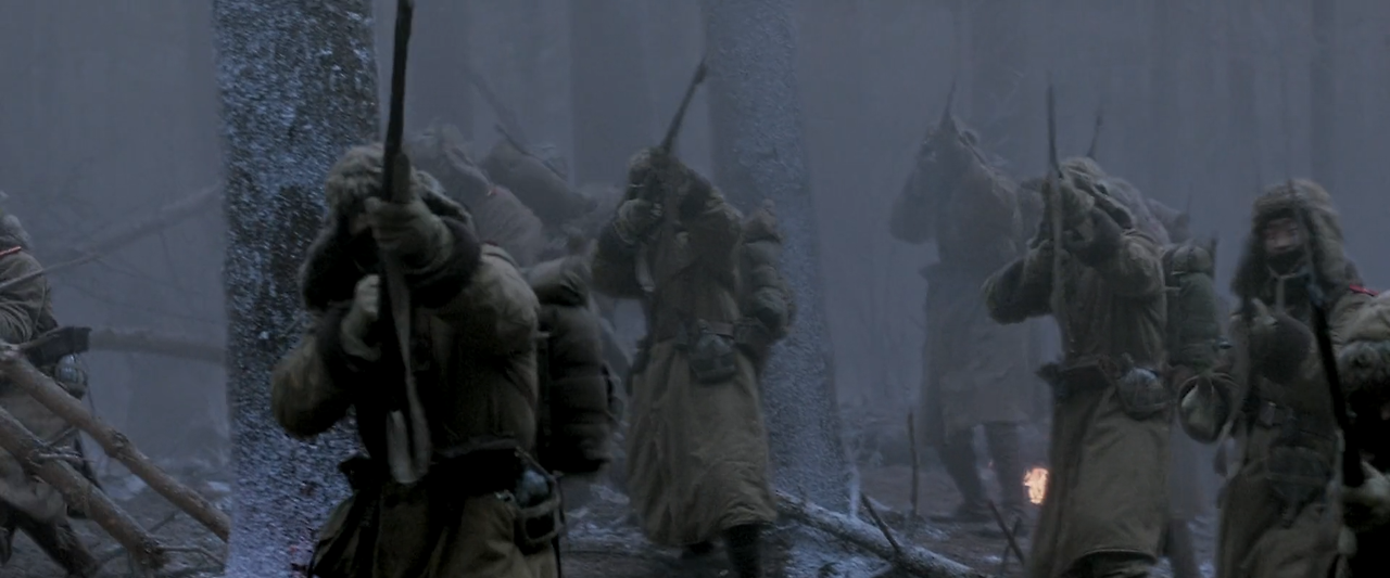 산꼭대기를 향하던 일본군들은 산 위에서 들려오는 총성을 듣는다. 그들은 서둘러 산을 오른다. 그들은 산군의 굴이 있는 절벽 위에 올랐지만, 그곳엔 아무도 없다. 다시 산을 내려온 류는 마에조노에게 아무것도 발견할 수 없었다는 보고를 한다. 마에조노는 나중에 다시 수색하겠다고 하면서 부대를 이끌고 산을 내려간다.