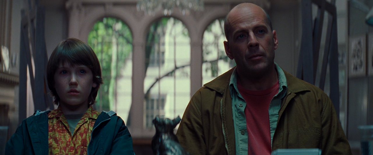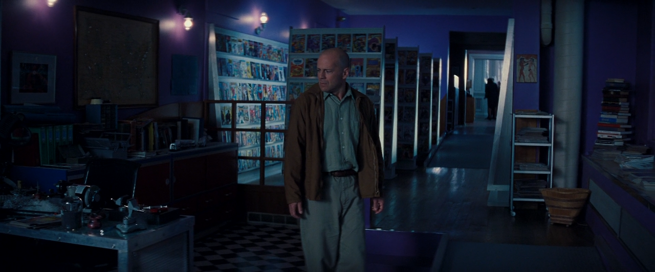 데이비드를 만난 일라이저는 슈퍼히어로에 대한 자신의 생각을 말해준다. 그에 따르면 자신이 선천적인 병으로 인해 극도로 허약한 몸이라면, 반대편에는 "부서지지 않는" 누군가가 존재해야 한다는 것이었다. 데이비드는 불쾌감을 느끼고 자리를 떠났지만, 나중에 자신이 350파운드의 벤치프레스를 들 수 있다는 것을 깨닫고 스스로 놀란다. 조셉은 아버지를 슈퍼히어로로 여기며 우상화하기 시작했지만, 데이비드는 자신이 그저 평범한 사람 가운데 하나일 뿐이라고 아들을 설득한다.