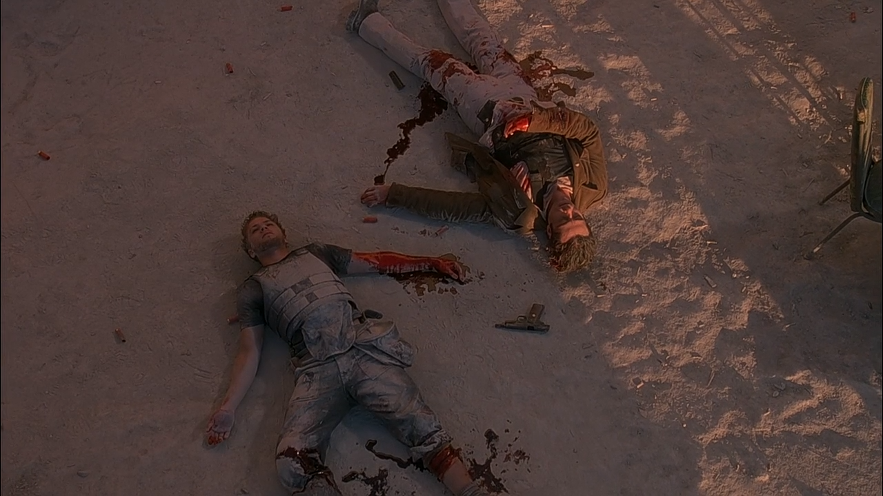 조금 후 구급차가 도착한다. 모텔 안에서 페인터가 로빈과 아기를 데리고 나온다. 심각한 부상을 입은 파커와 롱보는 죽어가면서 사르노에게 아기가 그의 손자라는 사실을 알려준다. 로빈과 페인터, 아기와 사르노는 구급차를 타고 떠나고, 파커와 롱보는 눈을 감는다.