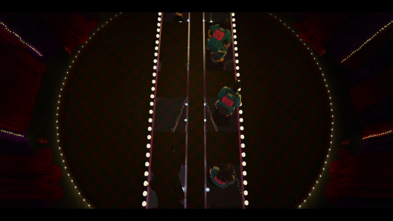 1번 참가자는 게임 내용이 발표되자 절망한다. 그가 이번 게임에서 살아남을 확률은 약 26만 분의 1에 불과하다. 앞쪽 순서의 참가자들 역시 마찬가지다. 그들이 살아남을 확률은 극히 낮다. 장덕수는 12번을 뽑았고, 강새벽이 13번, 성기훈은 14번, 조상우는 마지막인 16번을 뽑았다. 첫 번째 참가자가 징검다리를 건너기 시작했다. 그는 첫 번째 칸을 무사히 통과했지만, 두 번째 칸에서 떨어져 죽는다.