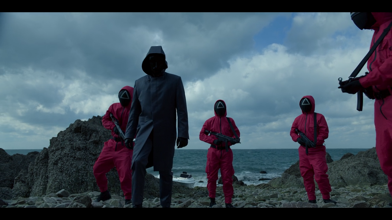 한편, 게임의 비밀을 파헤치던 형사 황준호는 게임장 밖으로 탈출하는 데 성공한다. 그는 겨우 외딴섬에 도착하여 경찰에 신고를 하려 하지만, 그때 프론트맨과 무장 요원들이 그를 추격해 온다. 프론트맨은 황준호에게 "왜 그렇게까지 하려 했냐"고 묻는다. 그리고 충격적인 사실이 밝혀진다. 프론트맨의 정체는 바로 황준호가 찾고 있던 실종된 형, 황인호였다.