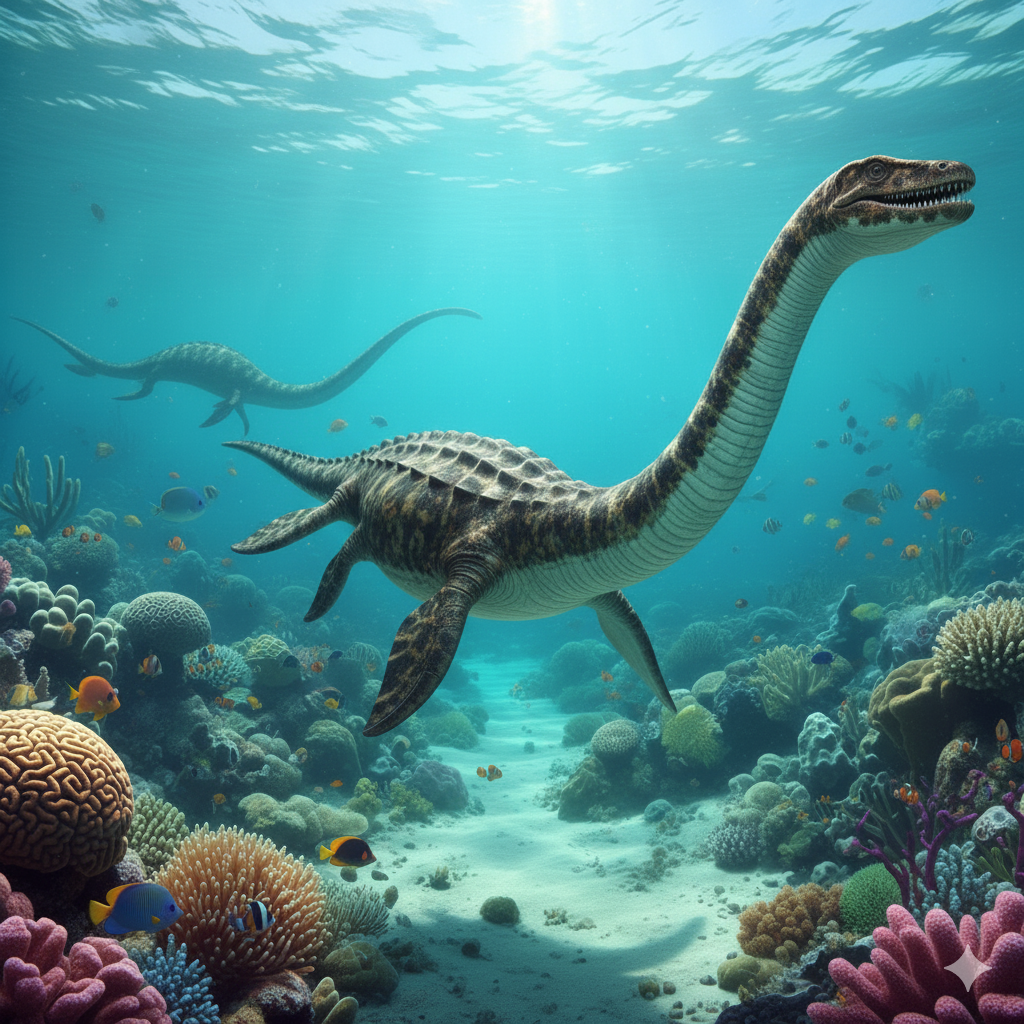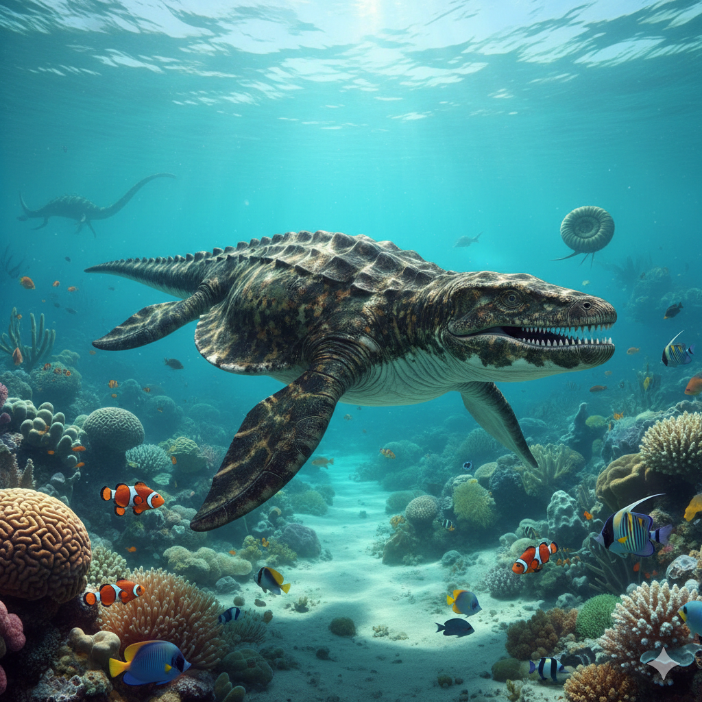 • 플라코두스 (Placodus): 몸이 단단한 장갑으로 덮여 있고, 조개나 소라의 껍데기를 부술 수 있는 크고 평평한 이빨을 가진 독특한 형태였다.