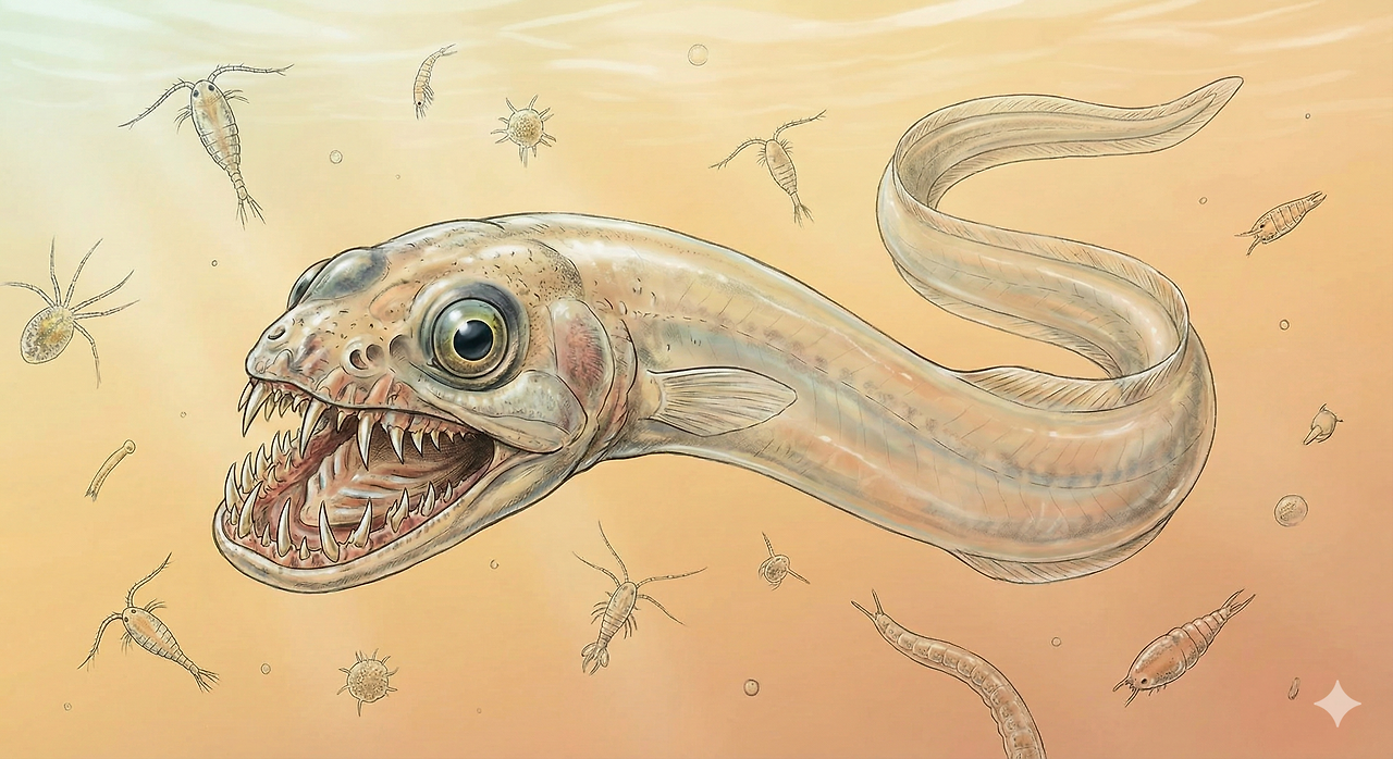 • 코노돈트 (Conodonts): 장어와 닮은 미세한 척삭동물로 추정되며, 트라이아스기 지층의 연대를 측정하는 중요한 표준 화석으로 활용되다 트라이아스기 말 대멸종 때 완전히 사라졌다.