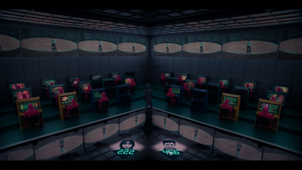 밤중에 기훈에게 경비병이 찾아와 프론트맨에게 데려간다. 기훈은 죽은 줄 알았던 영일이 바로 프론트맨이라는 사실을 알고 경악한다. 격분한 기훈이 프론트맨을 죽이려 하지만, 프론트맨은 자신은 죽어도 상관없지만 변할 것은 없다고 말한다. 그리고는 칼을 던져 주면서 남은 사람들을 죽이고 게임을 끝내라고 하는데, 기훈은 이를 거부한다.