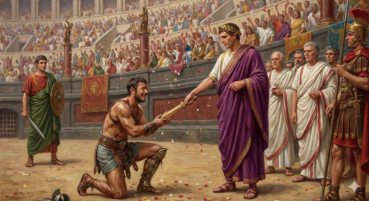 노예나 포로 출신의 검투사에게 부여되는 최고의 상은 “은퇴하여 자유민으로 인정받는 것”이었다. 검투사는 자신의 의지만으로 은퇴를 결정할 수 없었다. 은퇴는 철저히 실력과 경력, 주최측의 자비에 의해 결정되는 최고의 ‘보상’이었다. 뛰어난 기량을 보여준 검투사에게는 황제나 경기 주최자가 ‘루디스(Rudis)’라는 목검을 하사하였다. 이는 검투사 신분으로부터의 해방과 자유민으로서의 권리 회복을 상징하는 가장 영예로운 징표였다. 은퇴하여 자유를 얻은 검투사들은 사회적으로 상당한 대우를 받으며 안락한 생활을 누릴 수 있었다.
