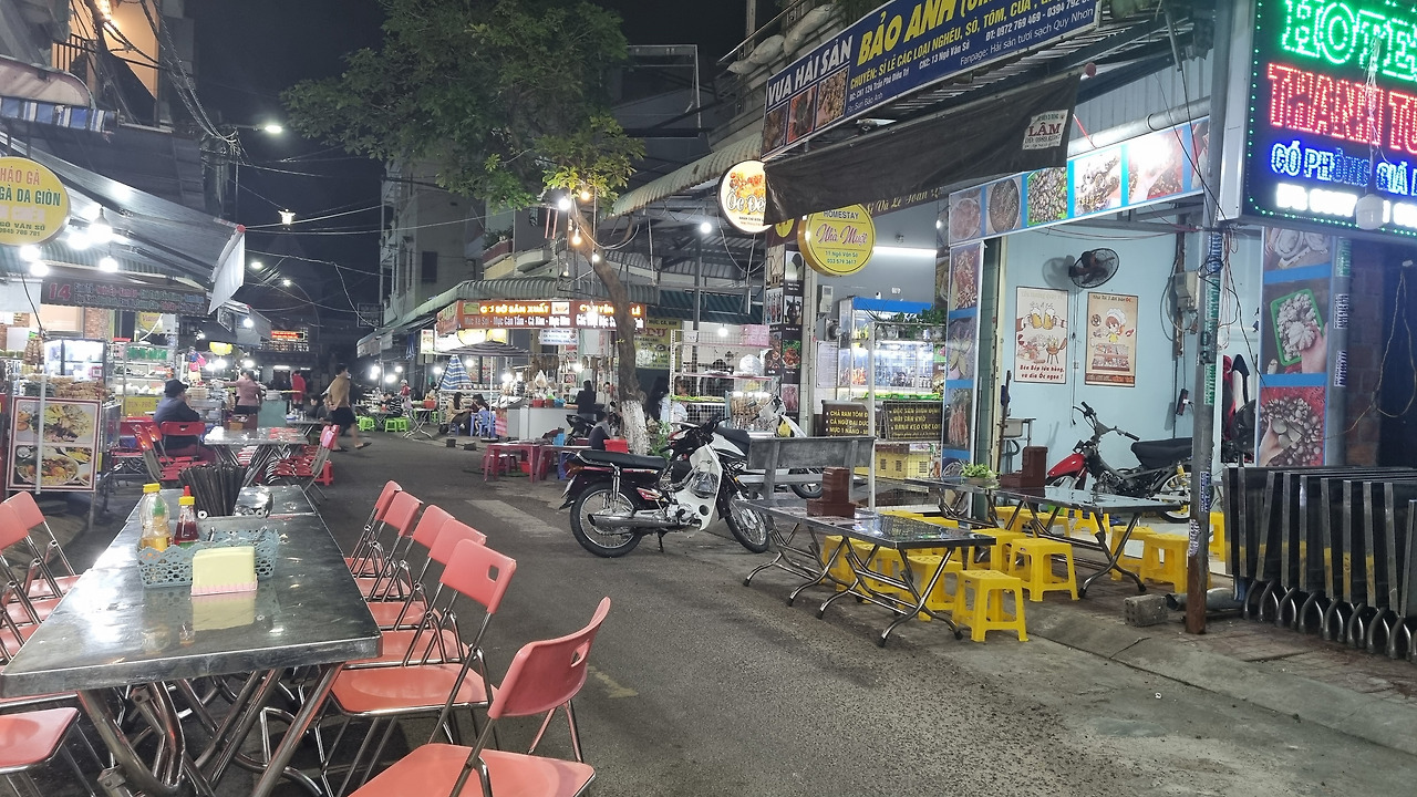 그곳은 아마 먹거리 야시장인 것 같은데, 조그만 음식점이 골목 양쪽으로 20개쯤 늘어서 있다. 마치 우리나라 전통시장의 먹거리 골목 같은 분위기이다. 적당한 집에 들어가 반세오와 분보를 주문했다. 반세오는 쌀가루 반죽에 새우와 야채 등을 넣어 바싹 구운 음식이다. 분보는 굵은 쌀국수에 얇게 썬 쇠고기, 돼지족발 등을 고명으로 올린 음식이다.둘 다 맛이 최고! 특히 분보는 얹힌 고기 양만 해도 우리나라의 고깃집 1인분은 될 만한 정도다. 합해서 65,000동, 3,500원 정도이다. 내일 또 와야겠다.