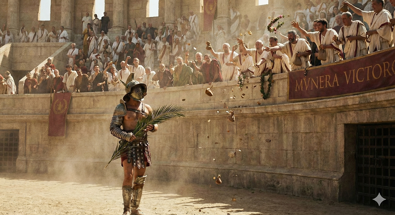 시합에서 승리하면 열광한 관중들이 승리한 검투사를 향해 보석이나 돈을 던졌다. 이 돈은 대부분 검투사가 모두 가졌다고 한다. 이 외에도 귀족이나 팬들이 보내는 후원금이 있었는데, 이 돈 역시 약간의 예외를 제외하고는 대부분 검투사들이 가졌다.