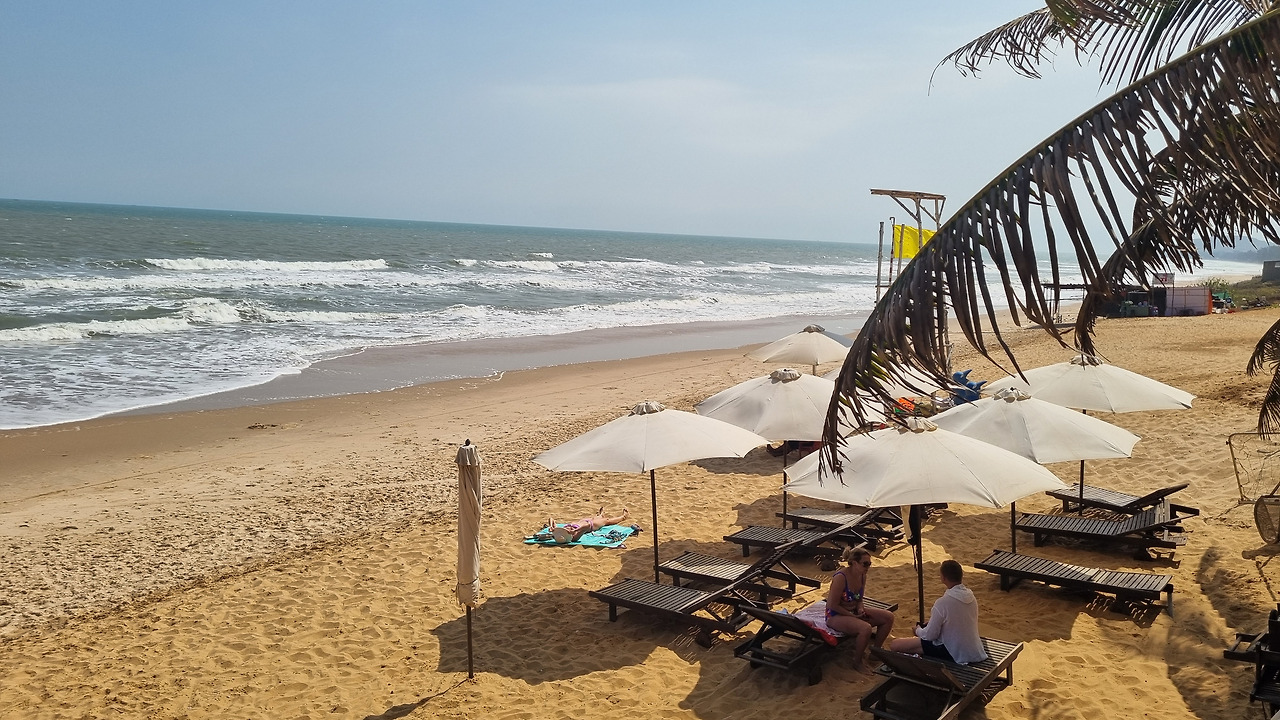 옆에 있는 에스컬레이터를 타고 리조트 아래쪽으로 내려갔다. 리조트의 위치는 해발 200미터가량 되어 보인다. 이용객들이 걸어 올라가기에 부담스러운 거리라 위까지 에스컬레이터가 설치되어 있다. 리조트 아래 해변은 리조트의 프라이빗 비치이다. 바다에 들어가긴 차가운 날씨라 일광욕을 즐기는 서양인들이 몇 명 보일 뿐이다. 파도도 제법 강하다. 비키니를 입은 한 서양 여성이 용감하게 바다로 들어가더니 금방 나온다.
