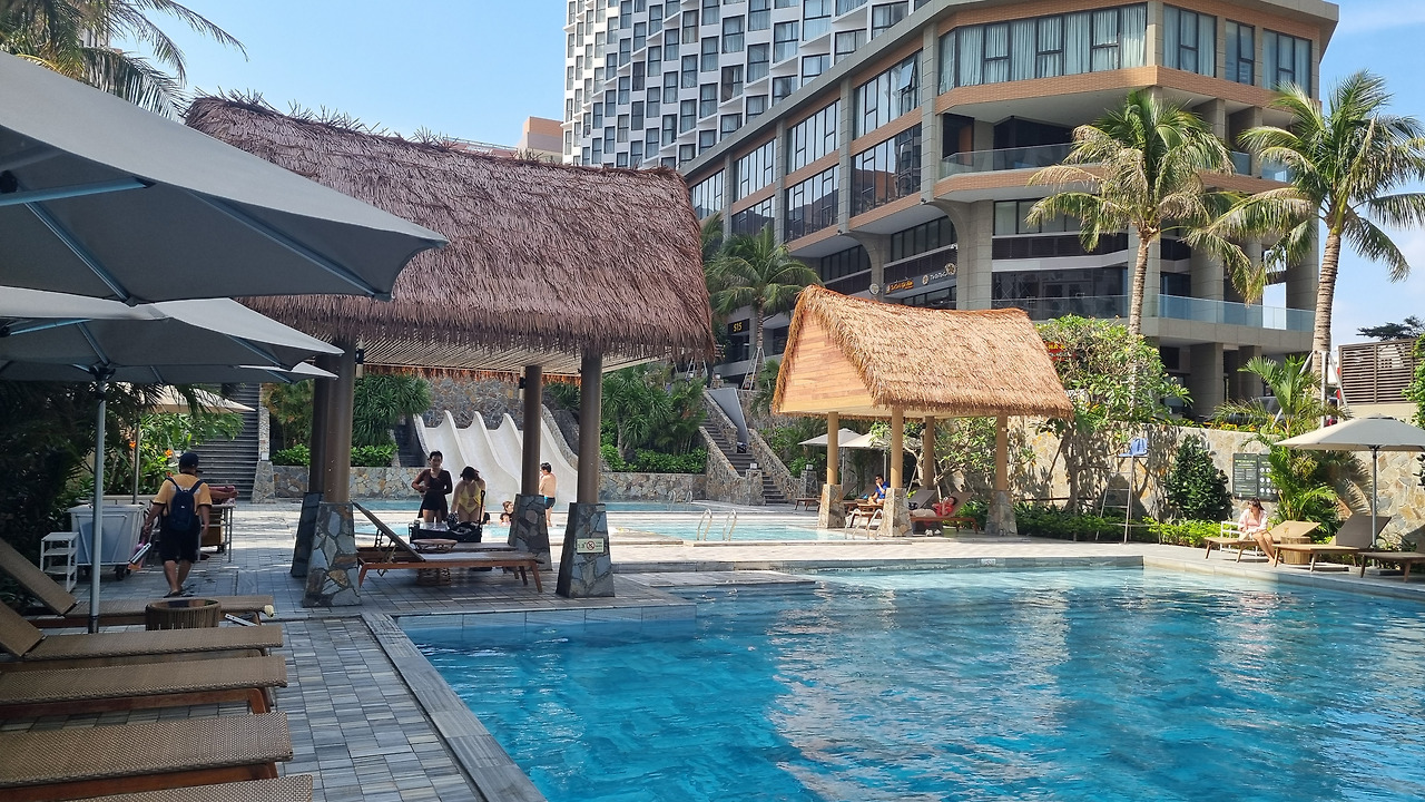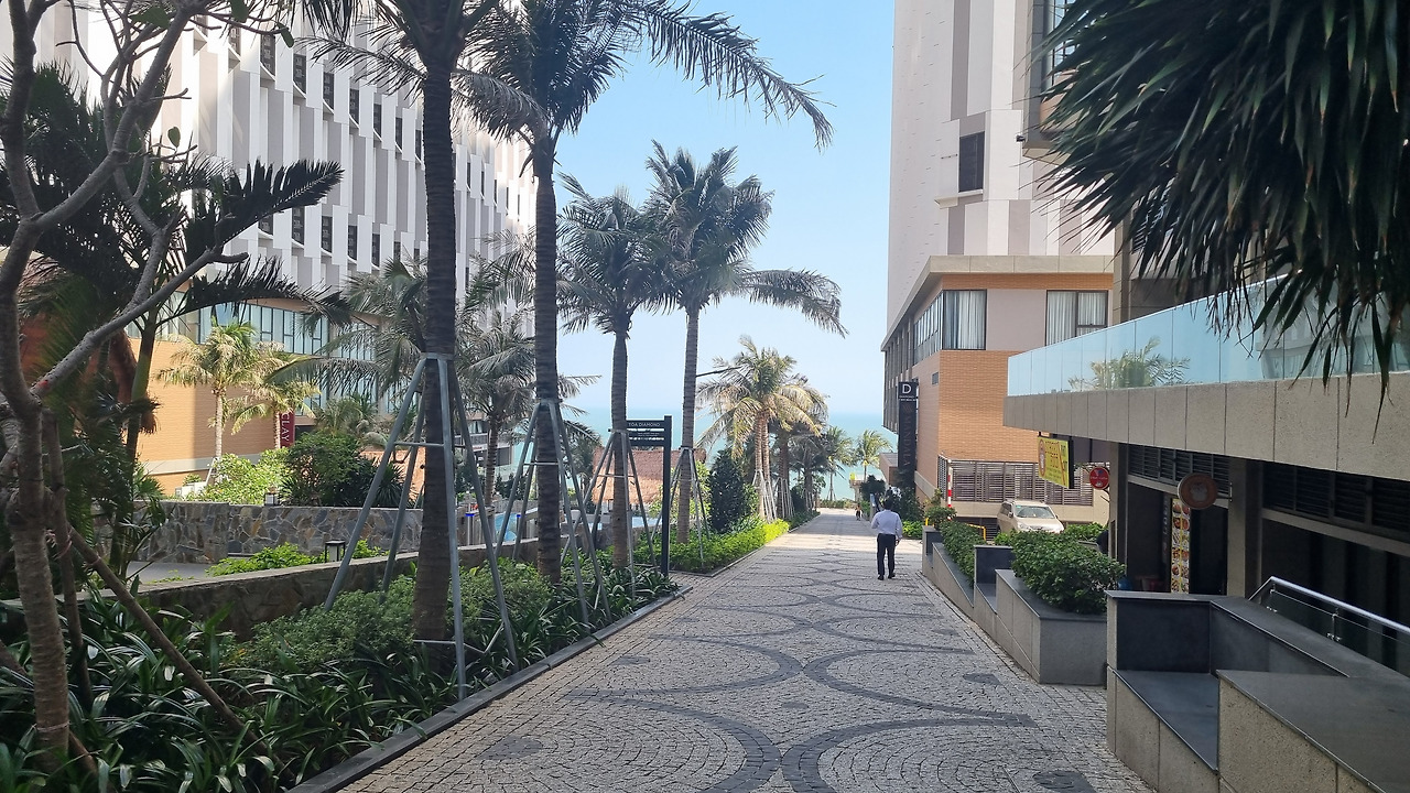 12시 가까이 되어 산책 겸 밖으로 나왔다. 정말 어마어마한 규모의 리조트이다. 객실이 3천 실이 넘는다고 한다. 4개의 고층 빌딩이 있고, 그 가운데는 풀과 정원이 있다. 물에 들어가기엔 좀 차가운 날씨라 수영을 하는 사람은 없고 일광욕을 하는 사람이 몇 명 보인다. 아래쪽으로 내려오니 바다를 내려다보는 위치에 풀이 또 하나 있다.