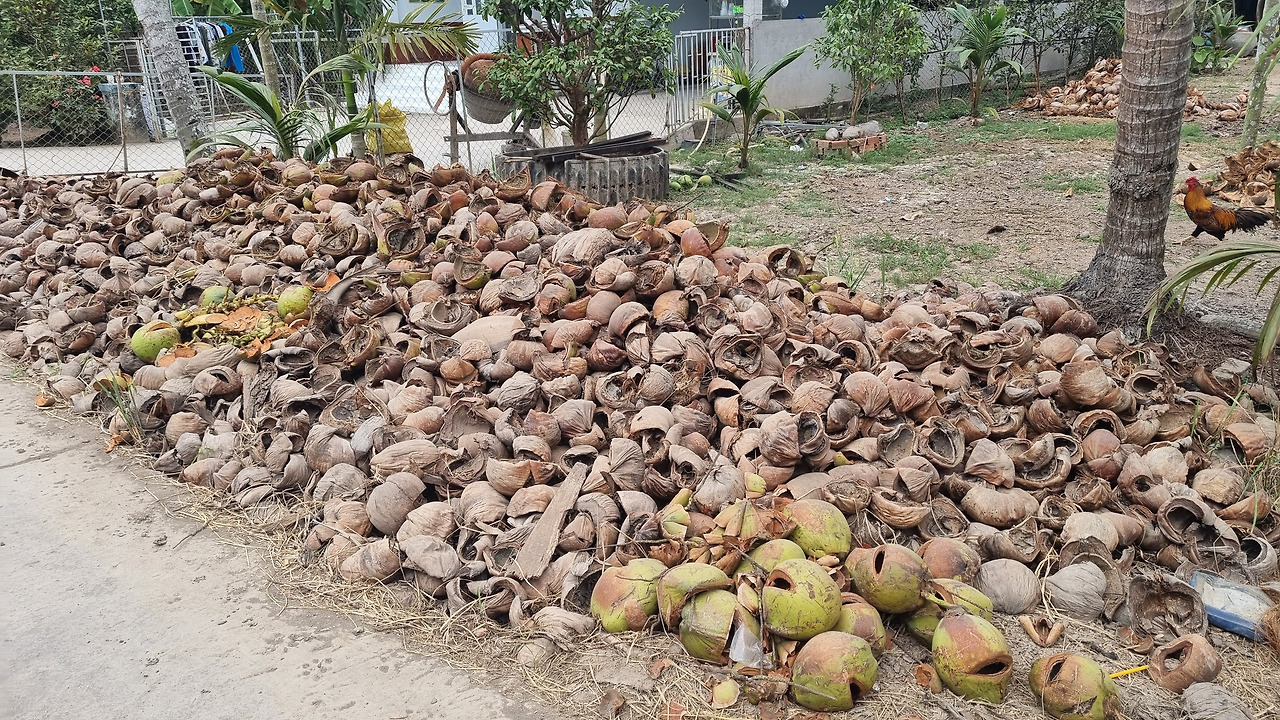 다시 코코넛 농장 사이 도로를 달린다. 가끔 길 옆에 코코넛 껍질 무더기가 보이는데, 얼핏 보면 마치 해골 무더기 같다. 한참을 가다 보니 길가 큰 차양 밑에서 아주머니들이 모여 코코넛 껍질 제거 작업을 하고 있다. 우리나라 어항 근처에서 아낙들이 모여 생선을 손질하는 모습이 연상된다. 사진을 찍어도 좋으냐고 물으니 모두 깔깔 웃으며 찍으라고 한다.