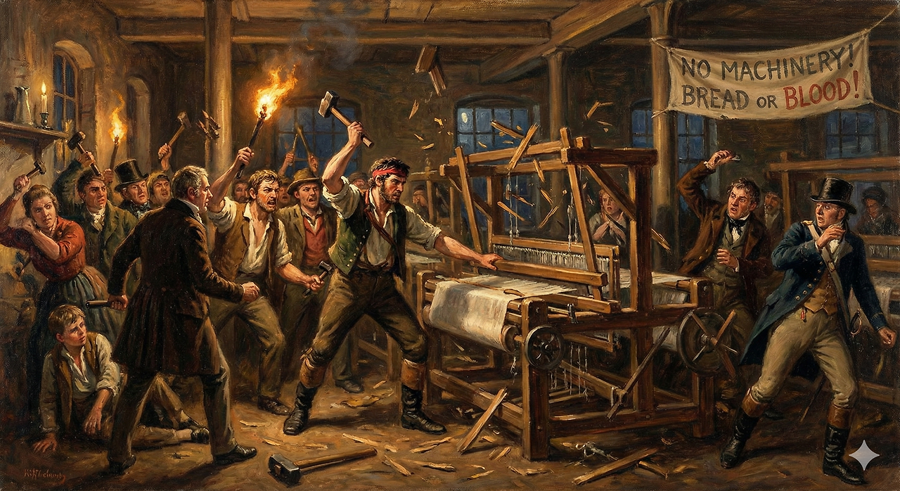 19세기 초 영국에서 러다이트 운동이 일어났다. 기계가 숙련 노동자의 자리를 차지하여 노동자를 내쫓는 이른바 "기계가 사람을 먹는" 사회 현상에 반발하여 노동자들이 대대적인 "기계 파괴" 운동에 나선 것이었다. 그런데 실제 사회는 어떻게 진행되었을까? 단기적으로는 노동자들의 우려대로 고용은 악화되고 노동자의 생활은 도탄에 빠졌다. 그러나 장기적으로는 기계의 도입이 오히려 노동의 질을 높이고 노동자의 생활을 풍요롭게 하는 방향으로 작용하였다. 이를 "러다이트 오류(Luddite Fallacy)"라 한다.
